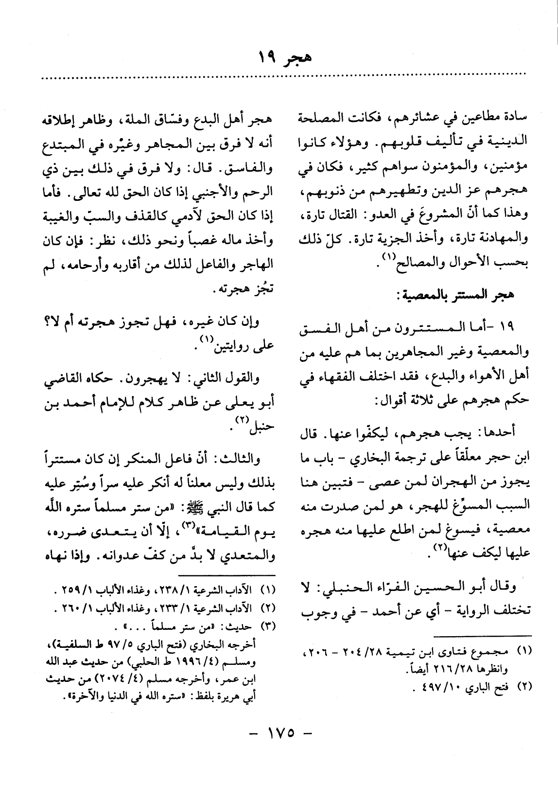 19 - أَمَّا الْمُسْتَتِرُونَ مِنْ أَهْل الْفِسْقِ وَالْمَعْصِيَةِ وَغَيْرُ الْمُجَاهِرِينَ بِمَا هُمْ عَلَيْهِ مِنْ أَهْل الأَْهْوَاءِ وَالْبِدَعِ، فَقَدِ اخْتَلَفَ الْفُقَهَاءُ فِي حُكْمِ هَجْرِهِمْ عَلَى ثَلاَثَةِ أَقْوَالٍ: