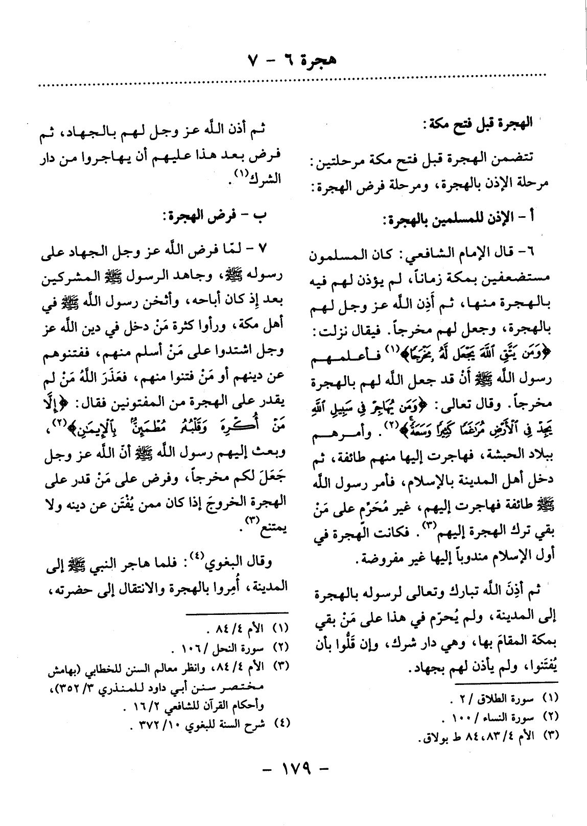 ثُمَّ أَذِنَ اللَّهُ عَزَّ وَجَل لَهُمْ بِالْجِهَادِ، ثُمَّ فَرَضَ بَعْدَ هَذَا عَلَيْهِمْ أَنْ يُهَاجِرُوا مِنْ دَارِ الشِّرْكِ (1) .