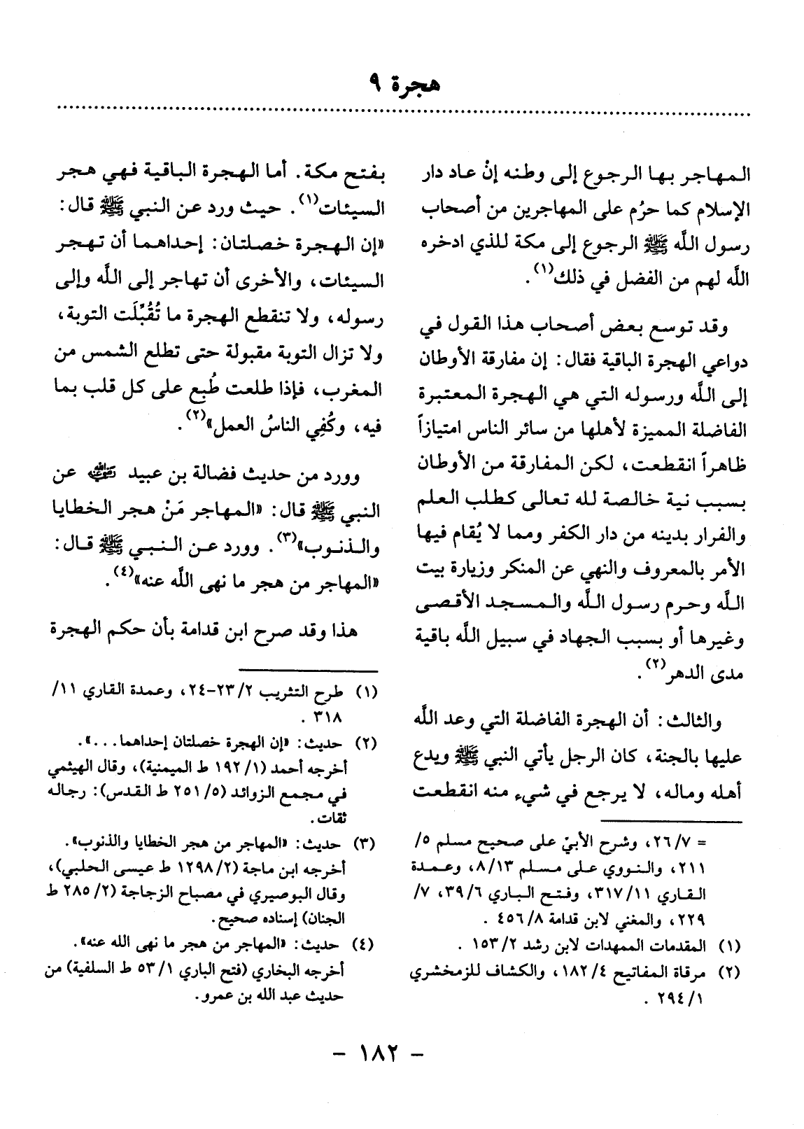هَذَا وَقَدْ صَرَّحَ ابْنُ قُدَامَةَ بِأَنَّ حُكْمَ الْهِجْرَةِ