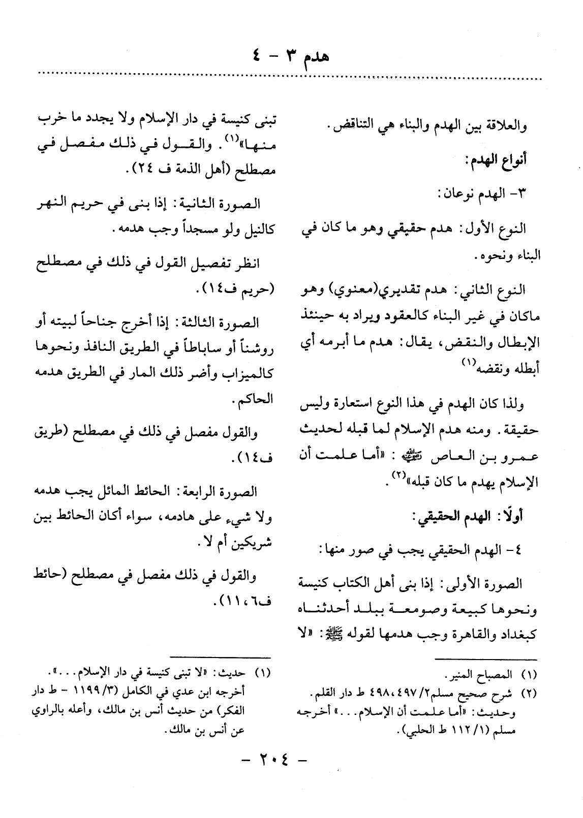 4 - الْهَدْمُ الْحَقِيقِيُّ يَجِبُ فِي صُوَرٍ مِنْهَا: