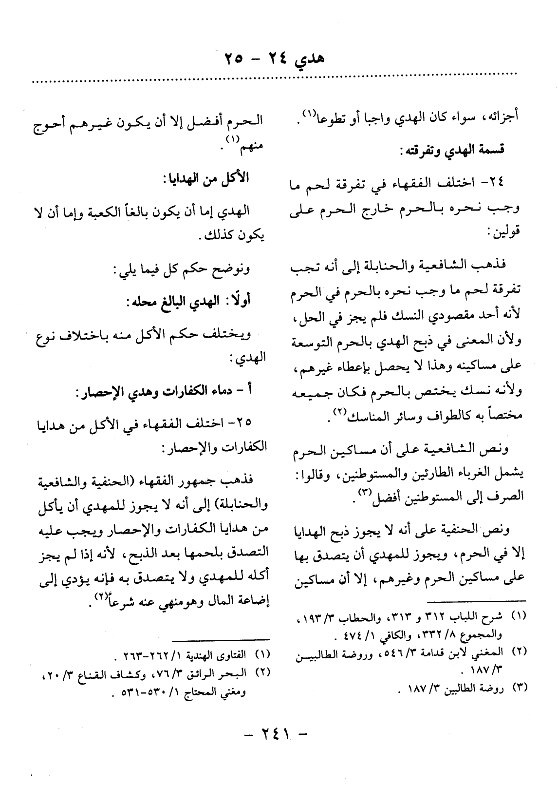 24 - اخْتَلَفَ الْفُقَهَاءُ فِي تَفْرِقَةِ لَحْمِ مَا وَجَبَ نَحْرُهُ بِالْحَرَمِ خَارِجَ الْحَرَمِ عَلَى قَوْلَيْنِ: