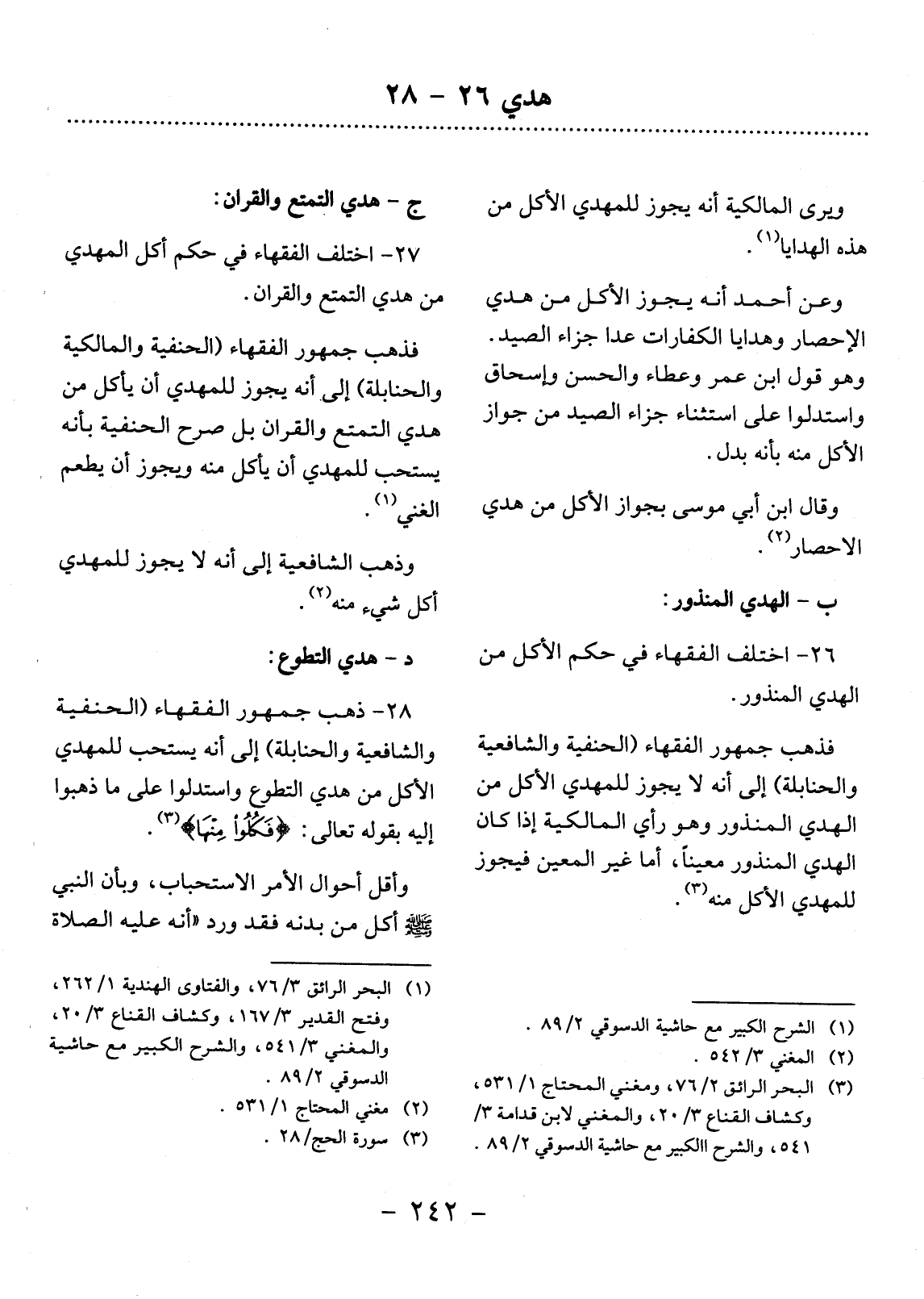 27 - اخْتَلَفَ الْفُقَهَاءُ فِي حُكْمِ أَكْل الْمُهْدِي مِنْ هَدْيِ التَّمَتُّعِ وَالْقِرَانِ.