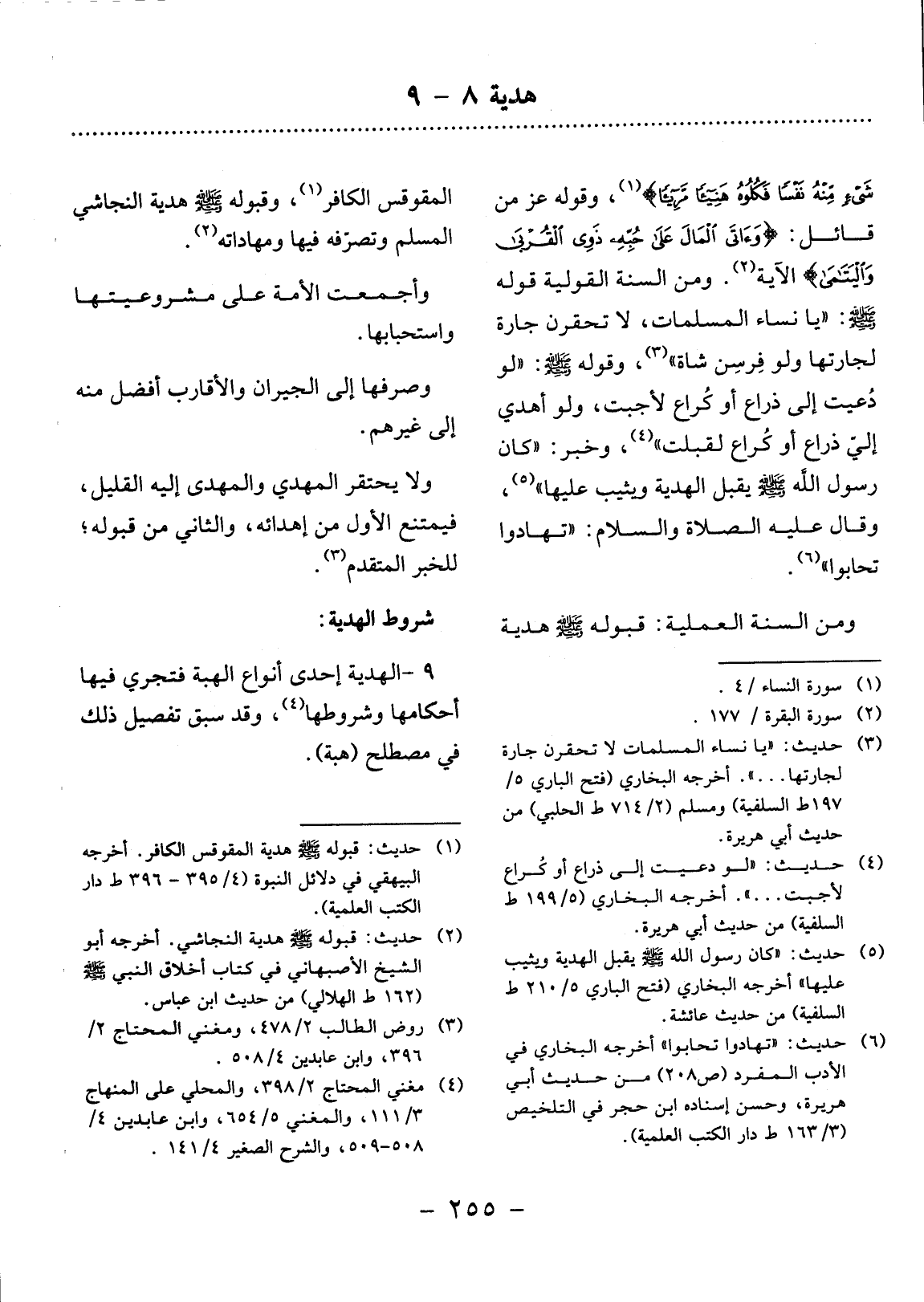 9 - الْهَدِيَّةُ إِحْدَى أَنْوَاعِ الْهِبَةِ فَتَجْرِي فِيهَا أَحْكَامُهَا وَشُرُوطُهَا (4) ، وَقَدْ سَبَقَ تَفْصِيل ذَلِكَ فِي مُصْطَلَحِ (هِبَة) .