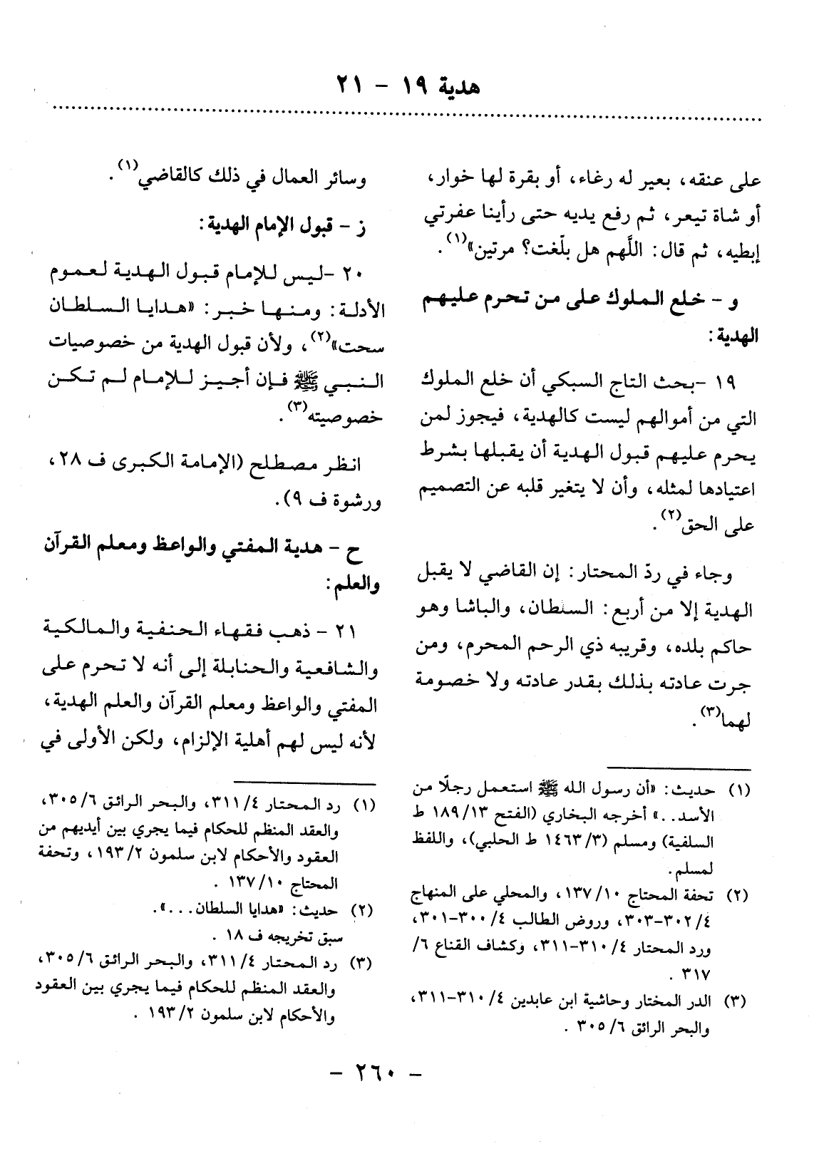 19 - بَحَثَ التَّاجُ السُّبْكِيُّ أَنَّ خِلَعَ الْمُلُوكِ الَّتِي مِنْ أَمْوَالِهِمْ لَيْسَتْ كَالْهَدِيَّةِ، فَيَجُوزُ لِمَنْ يَحْرُمُ عَلَيْهِمْ قَبُول الْهَدِيَّةِ أَنْ يَقْبَلَهَا بِشَرْطِ اعْتِيَادِهَا لِمْثِلِهِ، وَأَنْ لاَ يَتَغَيَّرَ قَلْبُهُ عَنِ التَّصْمِيمِ عَلَى الْحَقِّ (2) .