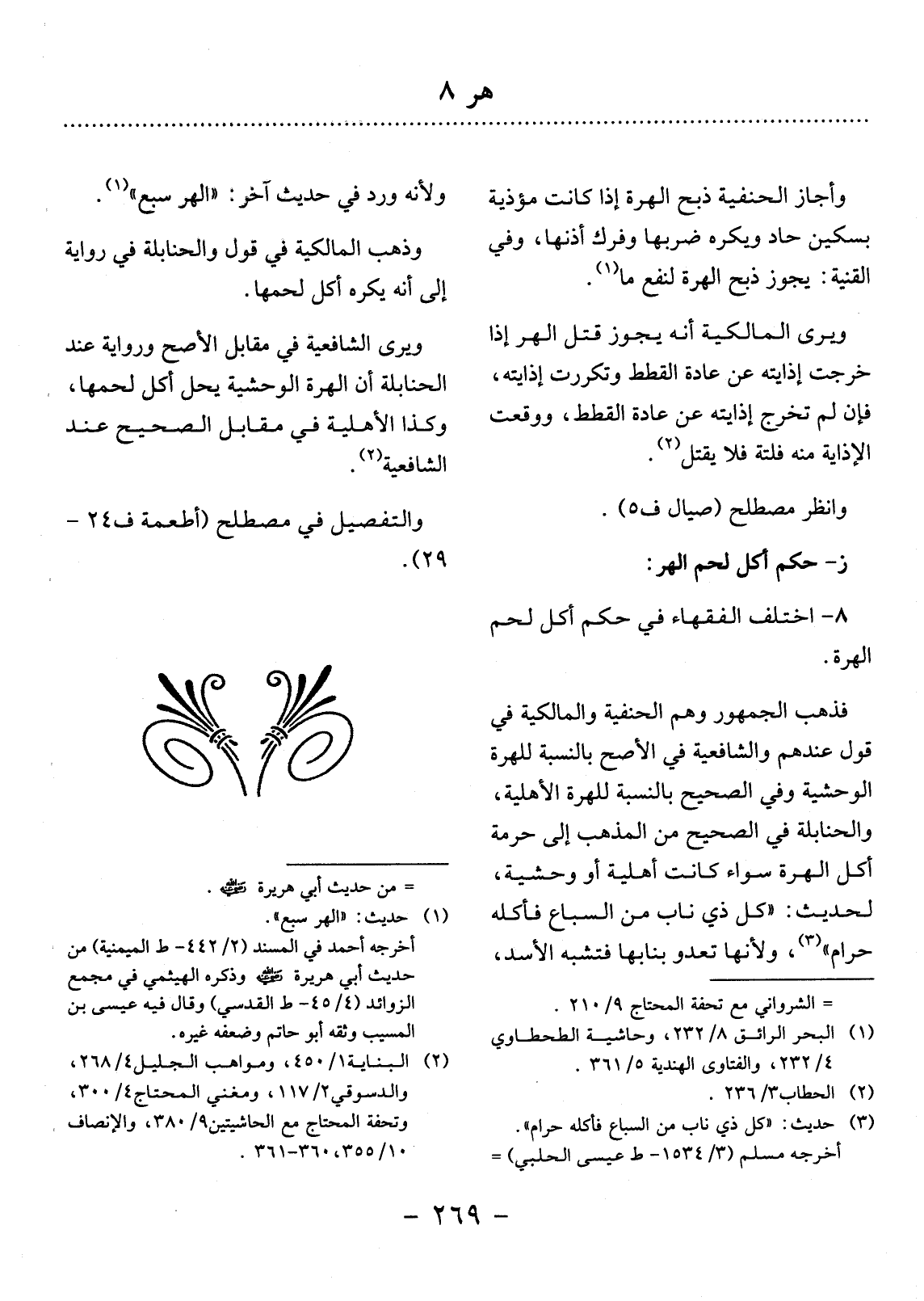 8 - اخْتَلَفَ الْفُقَهَاءُ فِي حُكْمِ أَكْل لَحْمِ الْهِرَّةِ.