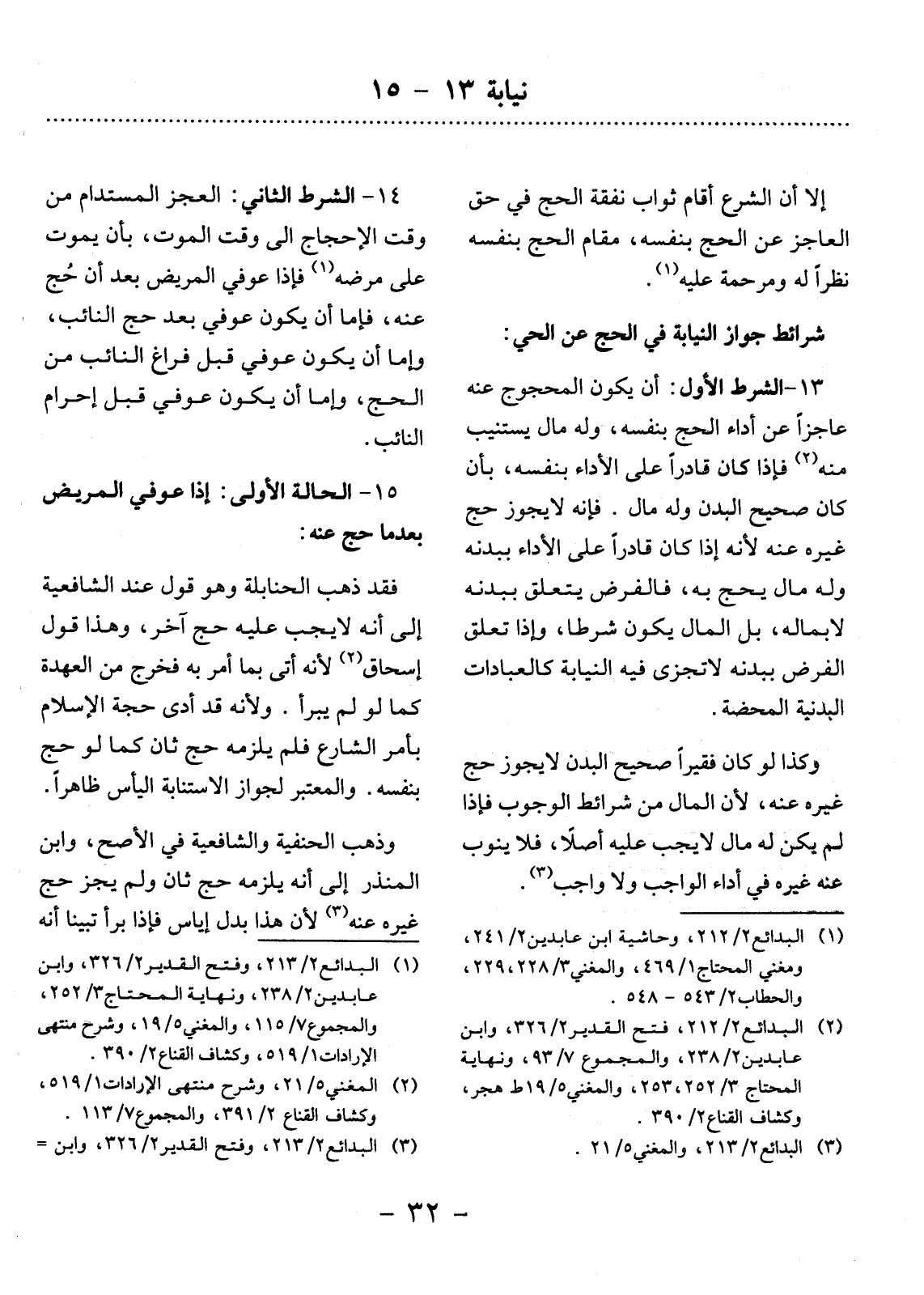 14 - الشَّرْطُ الثَّانِي: الْعَجْزُ الْمُسْتَدَامُ مِنْ وَقْتِ الإِْحْجَاجِ إِلَى وَقْتِ الْمَوْتِ، بِأَنْ يَمُوتَ عَلَى مَرَضِهِ (1) فَإِذَا عُوفِيَ الْمَرِيضُ بَعْدَ أَنْ حُجَّ عَنْهُ، فَإِمَّا أَنْ يَكُونَ عُوفِيَ بَعْدَ حَجِّ النَّائِبِ، وَإِمَّا أَنْ يَكُونَ عُوفِيَ قَبْل فَرَاغِ النَّائِبِ مِنَ الْحَجِّ، وَإِمَّا أَنْ يَكُونَ عُوفِيَ قَبْل إِحْرَامِ النَّائِبِ.