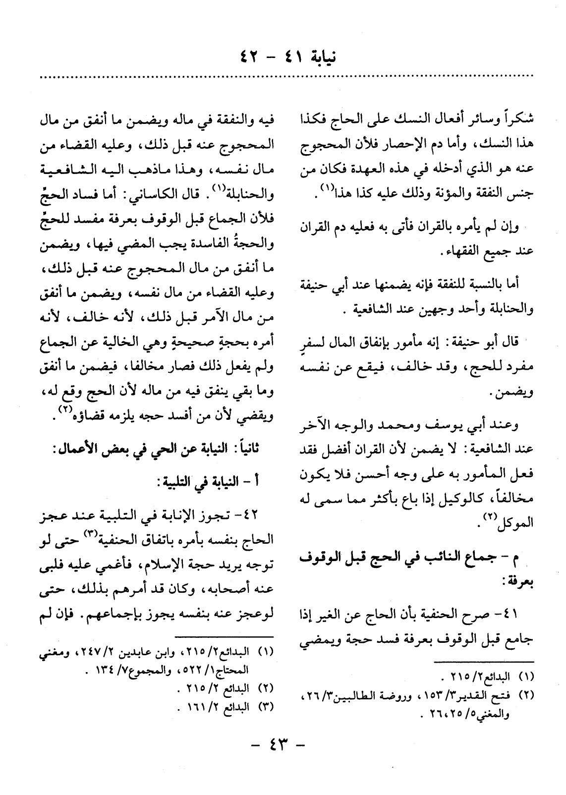 (1) البدائع 2 / 215، وابن عابدين 2 / 247، ومغني المحتاج 1 / 522، والمجموع 7 / 134.