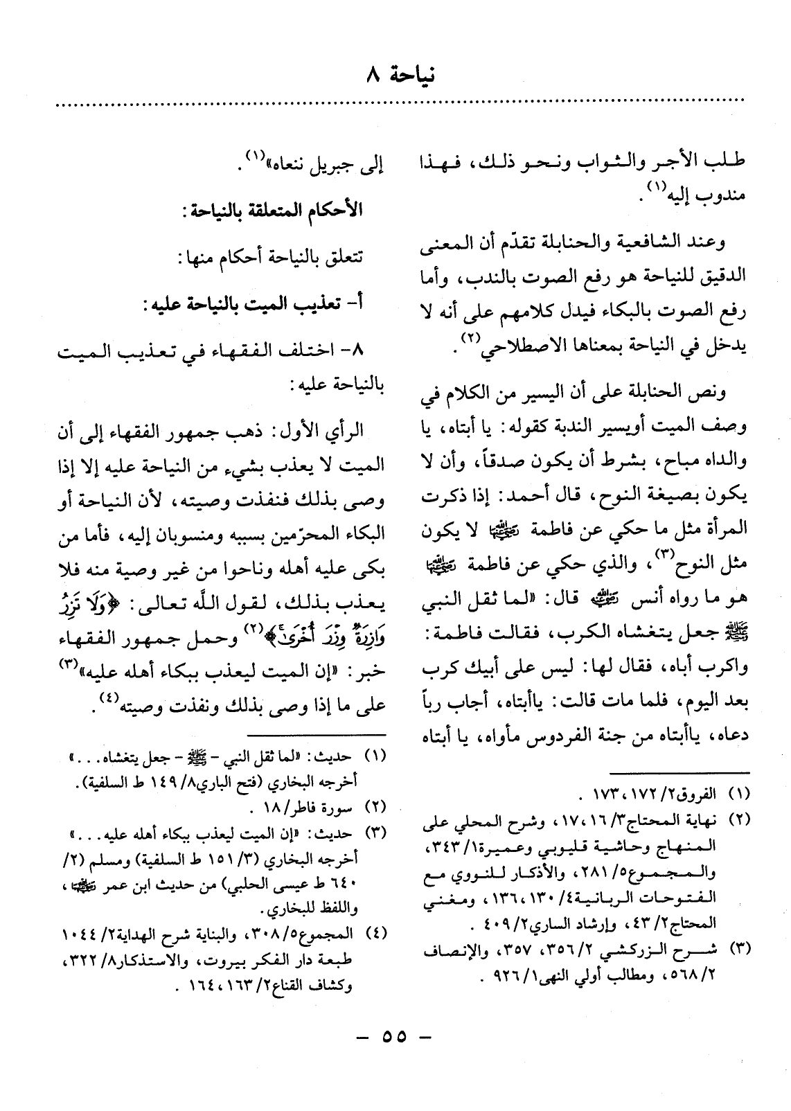 (2) نهاية المحتاج 3 / 16، 17، وشرح المحلى على المنهاج وحاشية قليوبي وعميرة 1 / 343، والمجموع 5 / 281، والأذكار للنووي مع الفتوحات الربانية 4 / 130، 136، ومغني المحتاج 2 / 43، وإرشاد الساري 2 / 409.