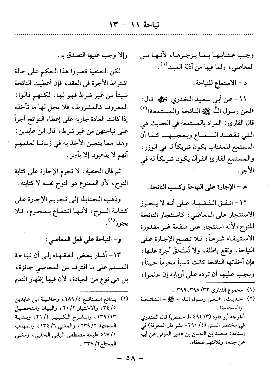 11 - عَنْ أَبِي سَعِيدٍ الْخُدْرِيِّ - رَضِيَ اللَّهُ عَنْهُ - قَال: لَعَنَ رَسُول اللَّهِ صَلَّى اللَّهُ عَلَيْهِ وَسَلَّمَ النَّائِحَةَ وَالْمُسْتَمِعَةَ (2) قَال الْقَارِّيُّ: الْمُرَادُ بِالْمُسْتَمِعَةِ فِي الْحَدِيثِ هِيَ الَّتِي تَقْصِدُ السَّمَاعَ وَيُعْجِبُهَا، كَمَا أَنَّ الْمُسْتَمِعَ لِلْمُغْتَابِ يَكُونُ شَرِيكًا لَهُ فِي الْوِزْرِ، وَالْمُسْتَمِعَ لِقَارِئِ الْقُرْآنِ يَكُونُ شَرِيكًا لَهُ فِي الأَْجْرِ.