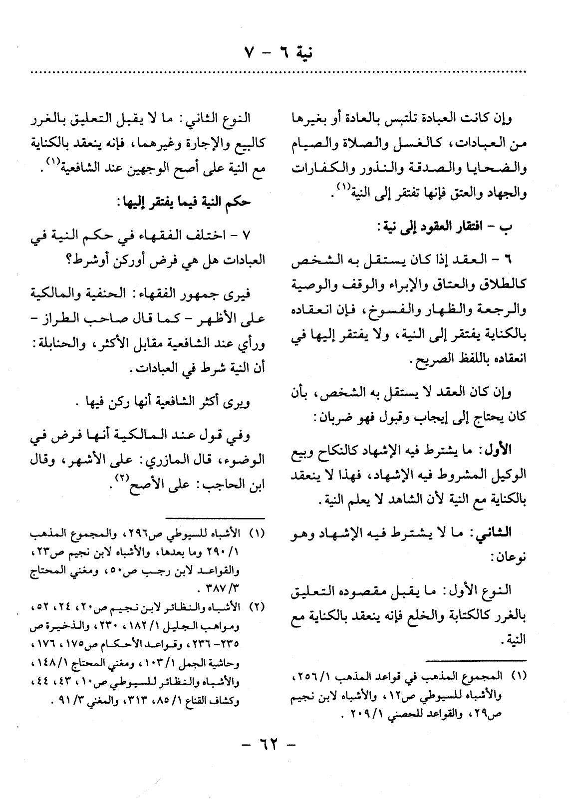 (1) المجموع المذهب في قواعد المذهب 1 / 256، والأشباه للسيوطي ص 12، والأشباه لابن نجيم ص 29، والقواعد للحصني 1 / 209.
