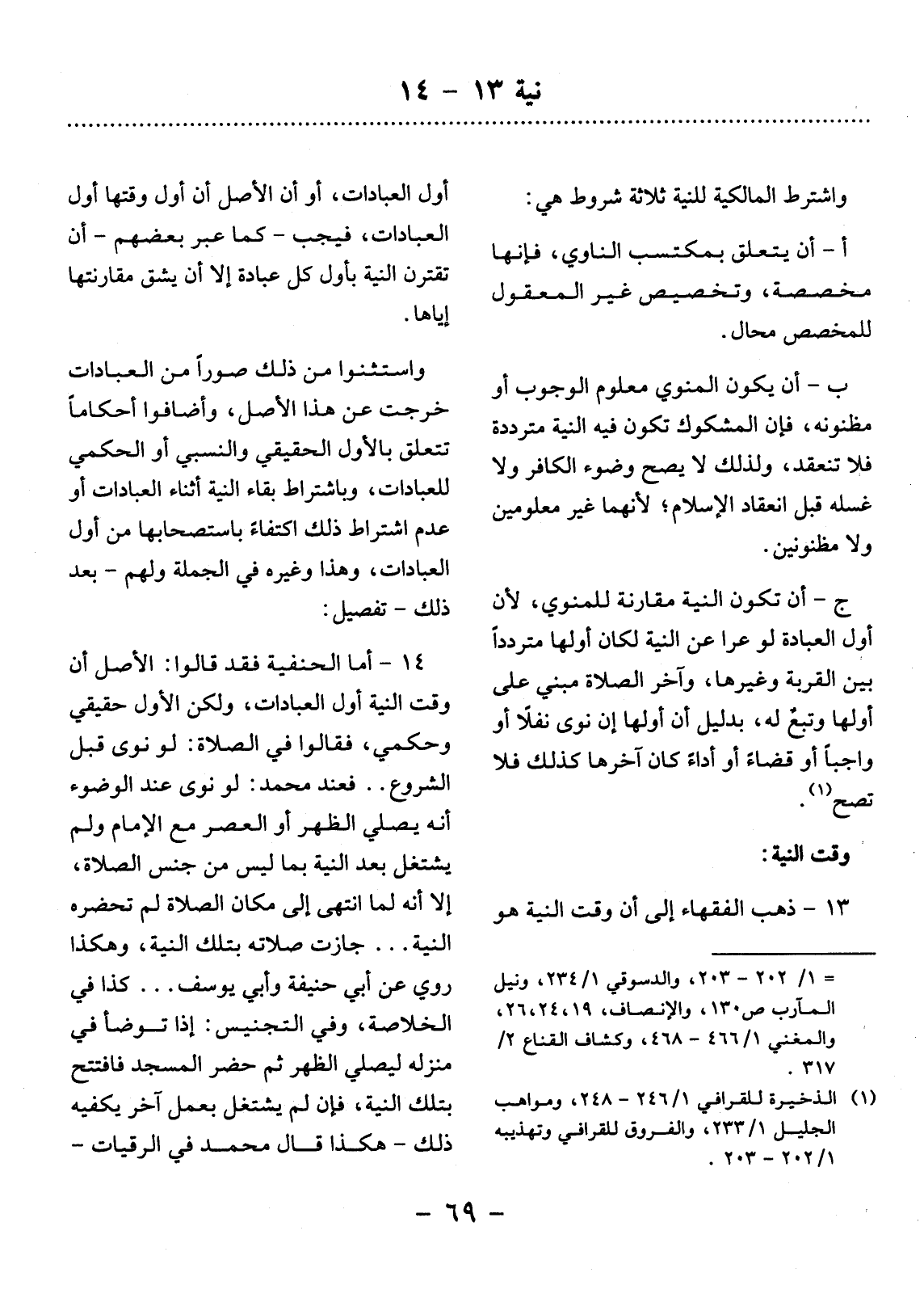 (1) الذخيرة للقرافي 1 / 246 - 248، ومواهب الجليل 1 / 233، والفروق للقرافي وتهذيبه 1 / 202 - 203.
