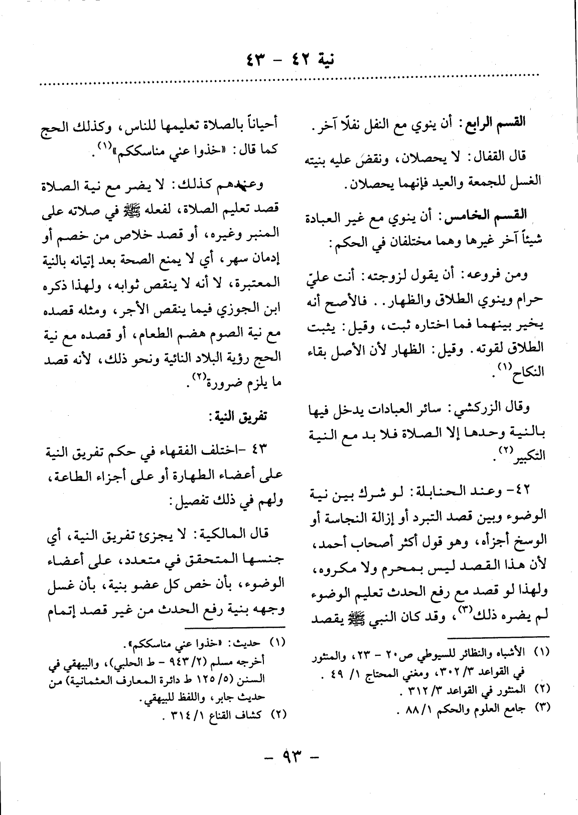 (1) الأشباه والنظائر للسيوطي ص 20 - 23، والمنثور في القواعد 3 / 302، ومغني المحتاج 1 / 49.