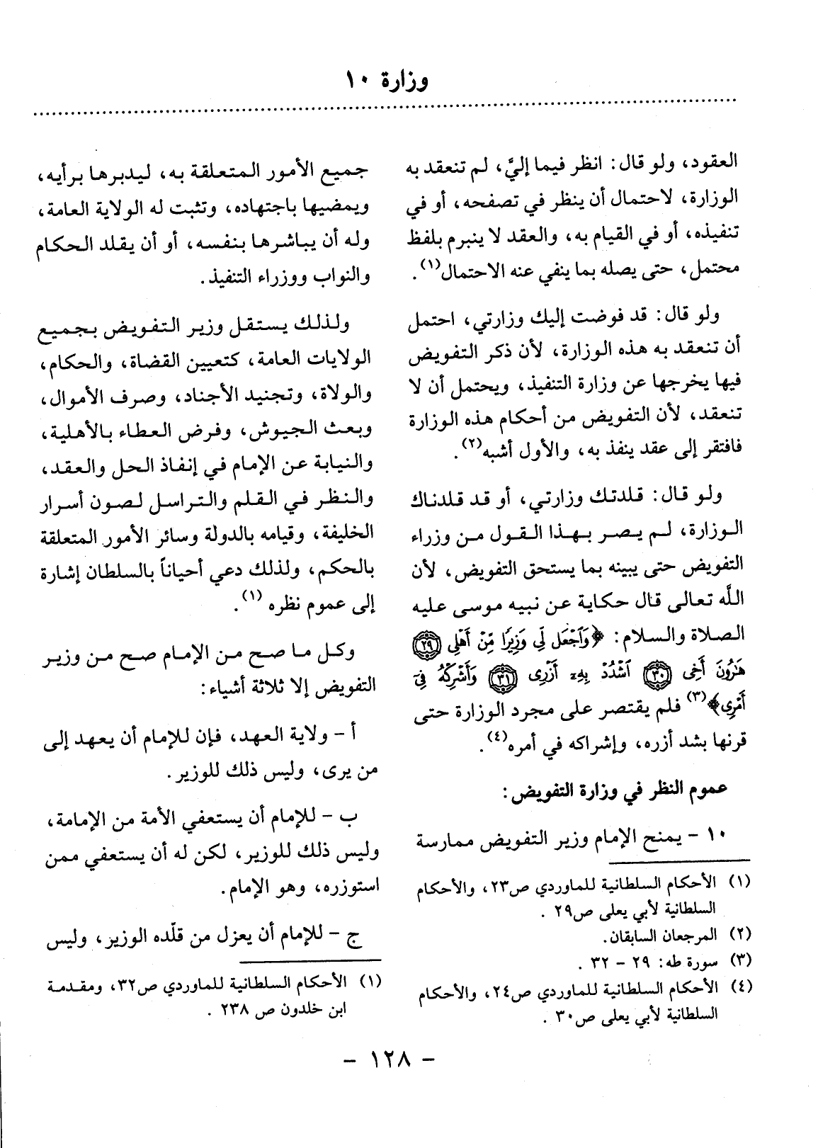 (4) الأحكام السلطانية للماوردي ص24، والأحكام السلطانية لأبي يعلى ص30.
