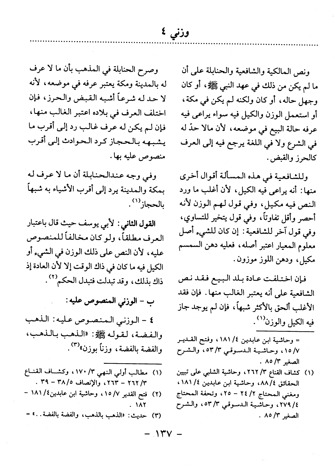 4 - الْوَزْنِيُّ الْمَنْصُوصُ عَلَيْهِ: الذَّهَبُ وَالْفِضَّةُ؛ لِقَوْلِهِ صَلَّى اللَّهُ عَلَيْهِ وَسَلَّمَ: " الذَّهَبُ بِالذَّهَبِ، وَالْفِضَّةُ بِالْفِضَّةِ، وَزْنًا بِوَزْنٍ " (3) .