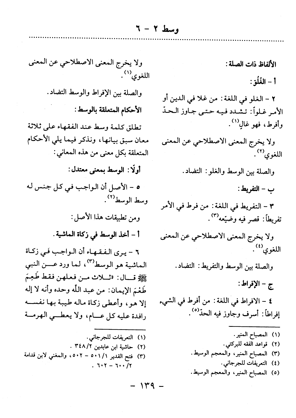 5 - الأَْصْل أَنَّ الْوَاجِبَ فِي كُل جِنْسٍ لَهُ وَسَطٌ الْوَسَطُ (2) .