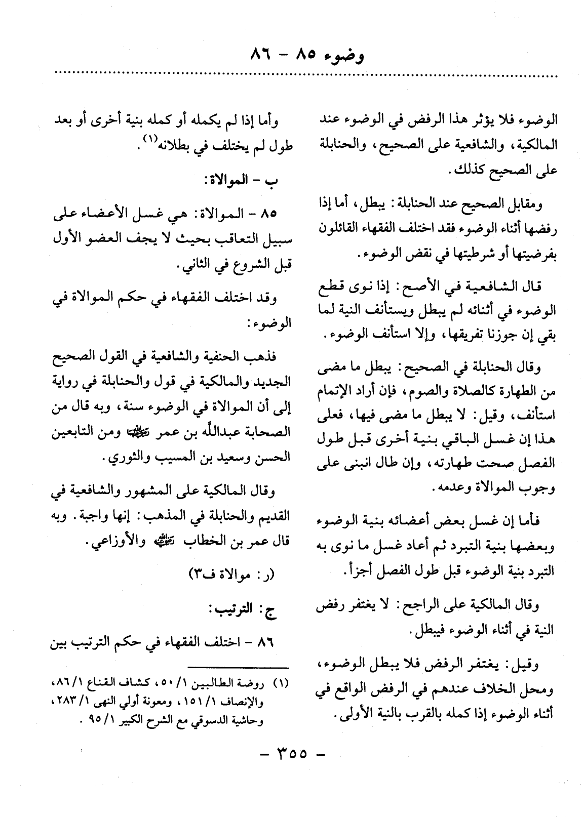 86 - اخْتَلَفَ الْفُقَهَاءُ فِي حُكْمِ التَّرْتِيبِ بَيْنَ