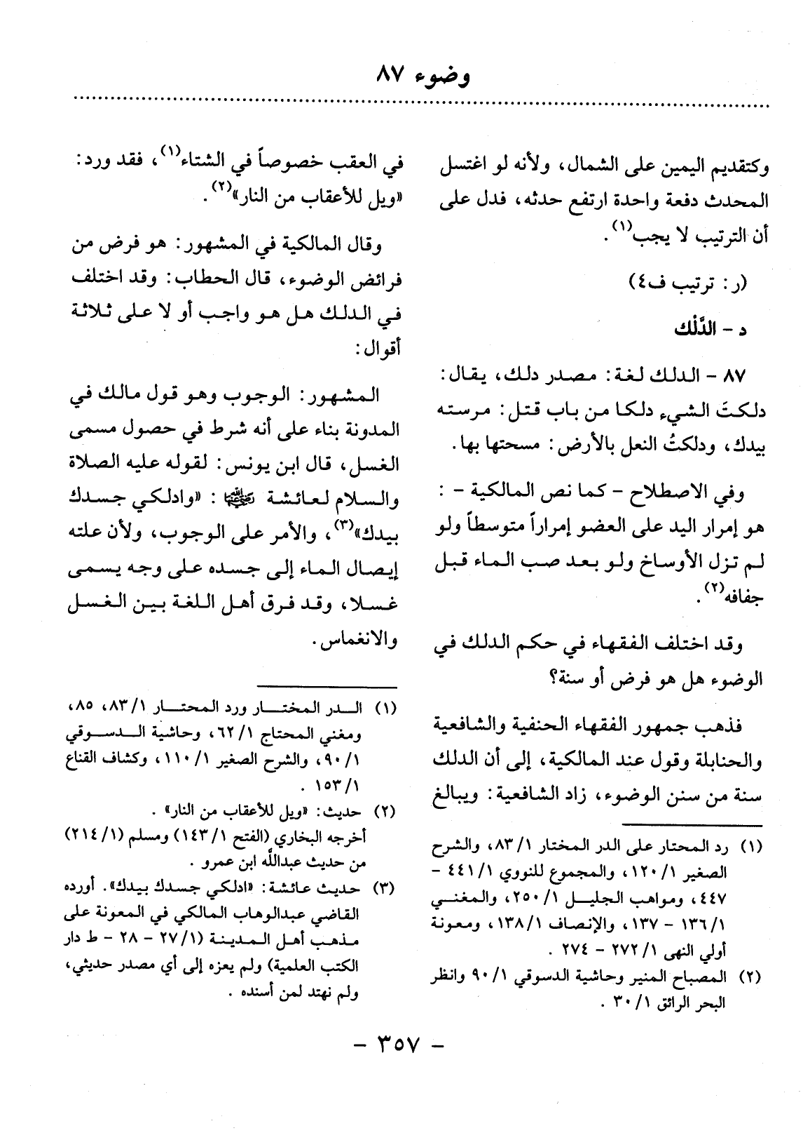 (2) الْمِصْبَاح المنير وحاشية الدُّسُوقِيّ 1 / 90 وانظر الْبَحْر الرَّائِق 1 / 30.