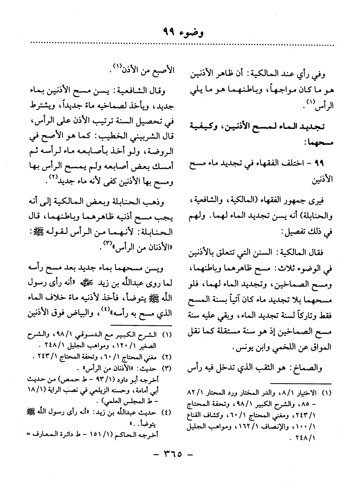 (3) حَدِيث: " الأُْذُنَانِ مِنَ الرَّأْسِ. . . " أَخْرَجَهُ أَبُو دَاوُد (1 / 93 ط حِمْص) مِنْ حَدِيثِ أَبِي أُمَامَةَ وحسنه الزيلعي فِي نَصْبِ الرَّايَةِ (1 / 18 ط الْمَجْلِس الْعِلْمِيّ) .