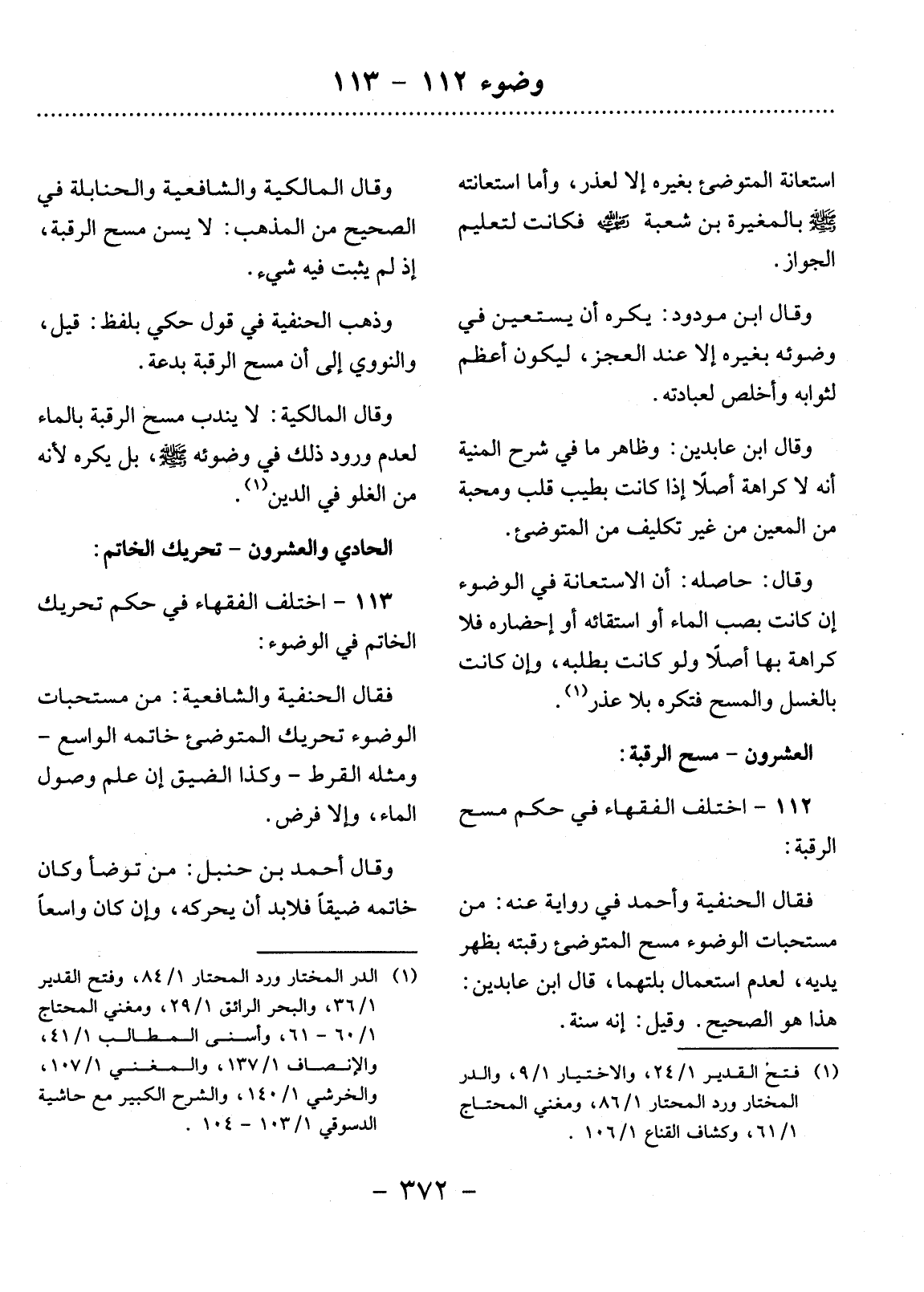112 ـ اخْتَلَفَ الْفُقَهَاءُ فِي حُكْمِ مَسْحِ الرَّقَبَةِ: