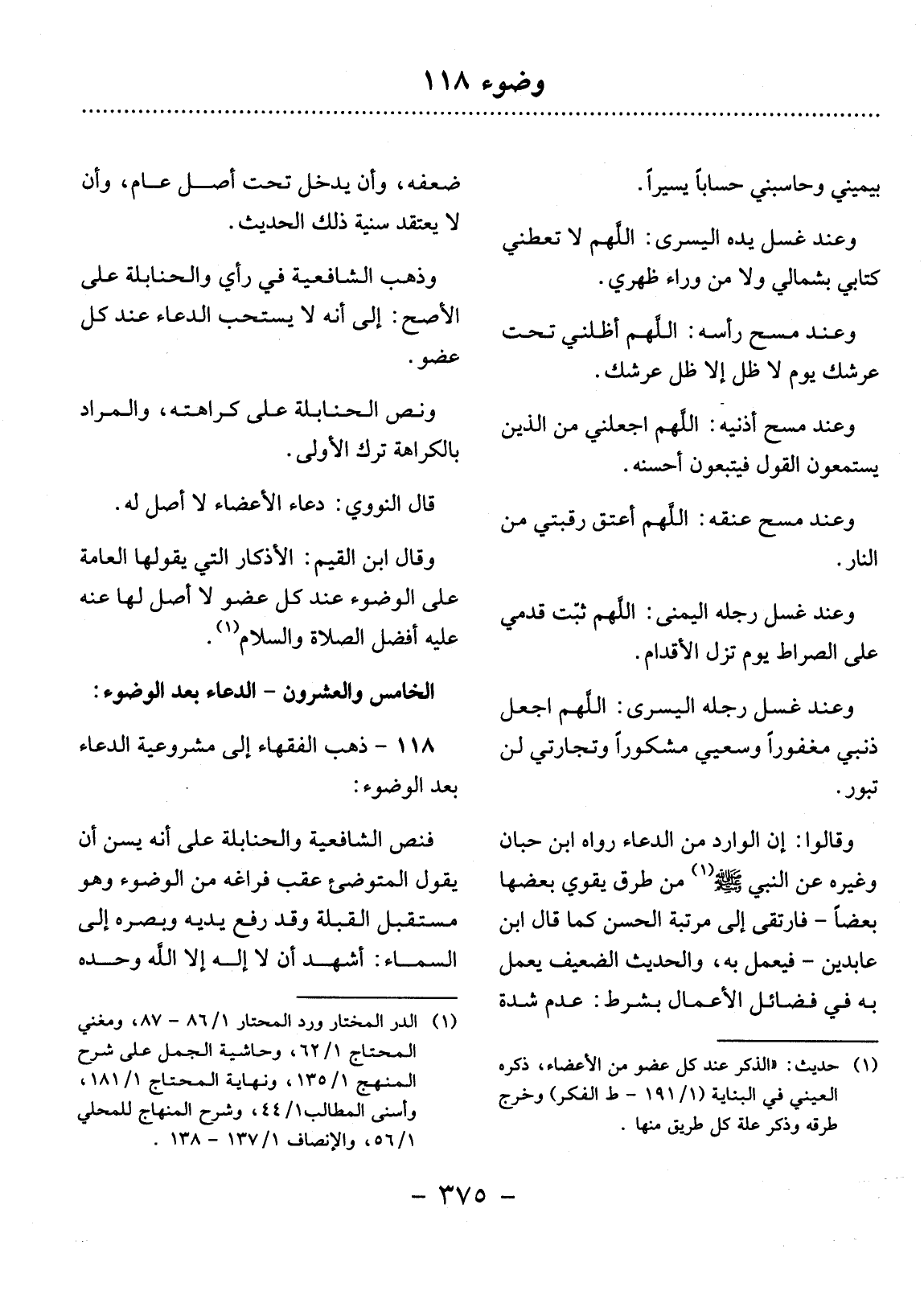 118 ـ ذَهَبَ الْفُقَهَاءُ إِلَى مَشْرُوعِيَّةِ الدُّعَاءِ بَعْدَ الْوُضُوءِ: