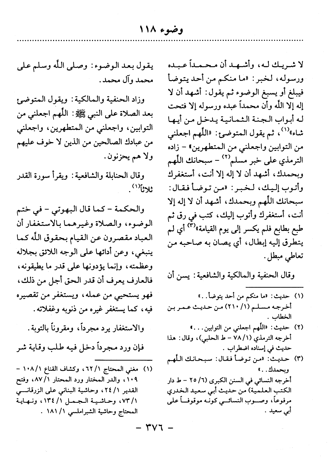 (1) مُغْنِي الْمُحْتَاج 1 / 62، وَكَشَّاف الْقِنَاع 1 / 108 - 109، وَالدَّرّ الْمُخْتَار وَرَدّ الْمُحْتَارِ 1 / 87، وَفَتْح الْقَدِير 1 / 24، وَحَاشِيَة الْبُنَانِيّ عَلَى الزُّرْقَانِيّ 1 / 73، وَحَاشِيَة الْجُمَل 1 / 134، وَنِهَايَة الْمُحْتَاجِ وَحَاشِيَة الشبراملسي 1 / 181.