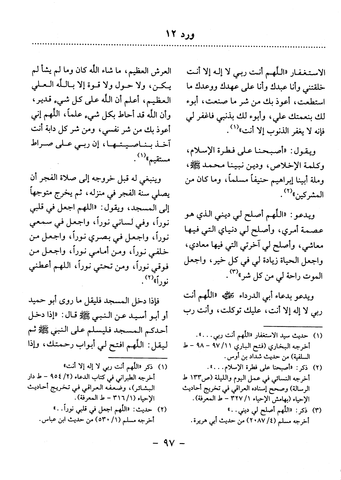 (1) حديث سيد الاستغفار " اللهم أنت ربي. . . " أخرجه البخاري (فتح الباري 11 / 97 ـ 98 ـ ط السلفية) من حديث شداد بن أوس.