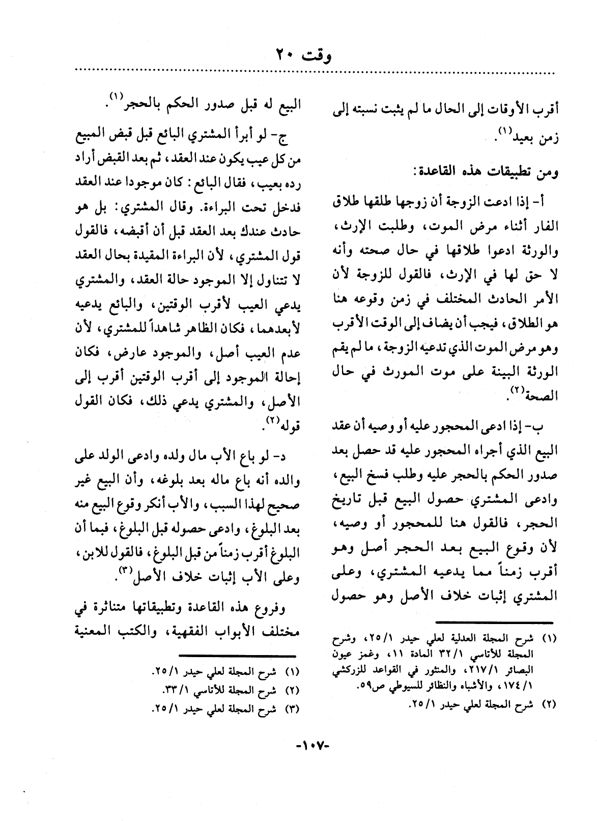 (1) شرح المجلة العدلية لعلي حيدر 1 / 25، وشرح المجلة للأتاسي 1 / 32 المادة 11، وغمز عيون البصائر 1 / 217، والمنثور في القواعد للزركشي 1 / 174، والأشباه والنظائر للسيوطي ص59.