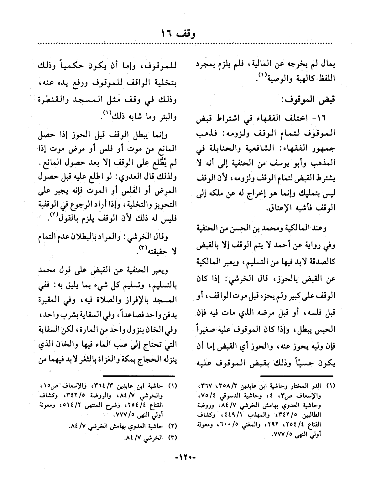 (1) حاشية ابن عابدين 3 / 364، والإسعاف ص15، والخرشي 7 / 84، والروضة 5 / 342، وكشاف القناع 4 / 254، وشرح المنتهى 2 / 514، ومعونة أولي النهى 5 / 777.
