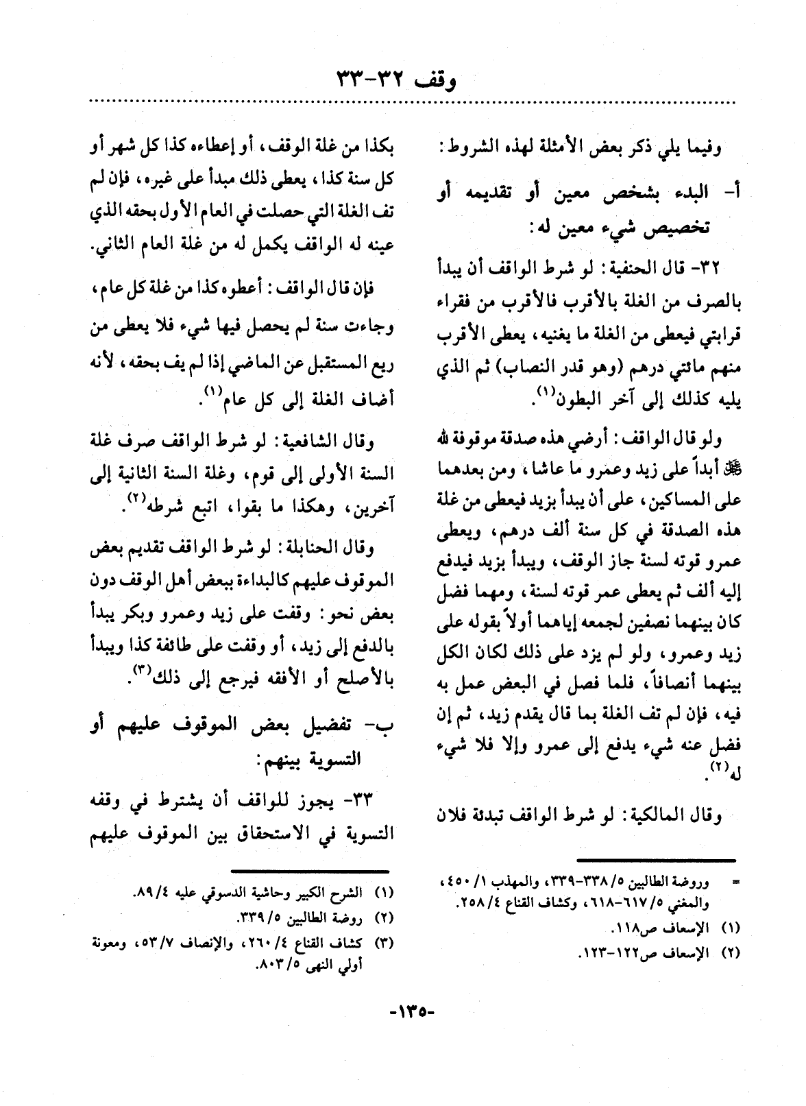 33 - يَجُوزُ لِلْوَاقِفِ أَنْ يَشْتَرِطَ فِي وَقْفِهِ التَّسْوِيَةَ فِي الاِسْتِحْقَاقِ بَيْنَ الْمَوْقُوفِ عَلَيْهِمْ