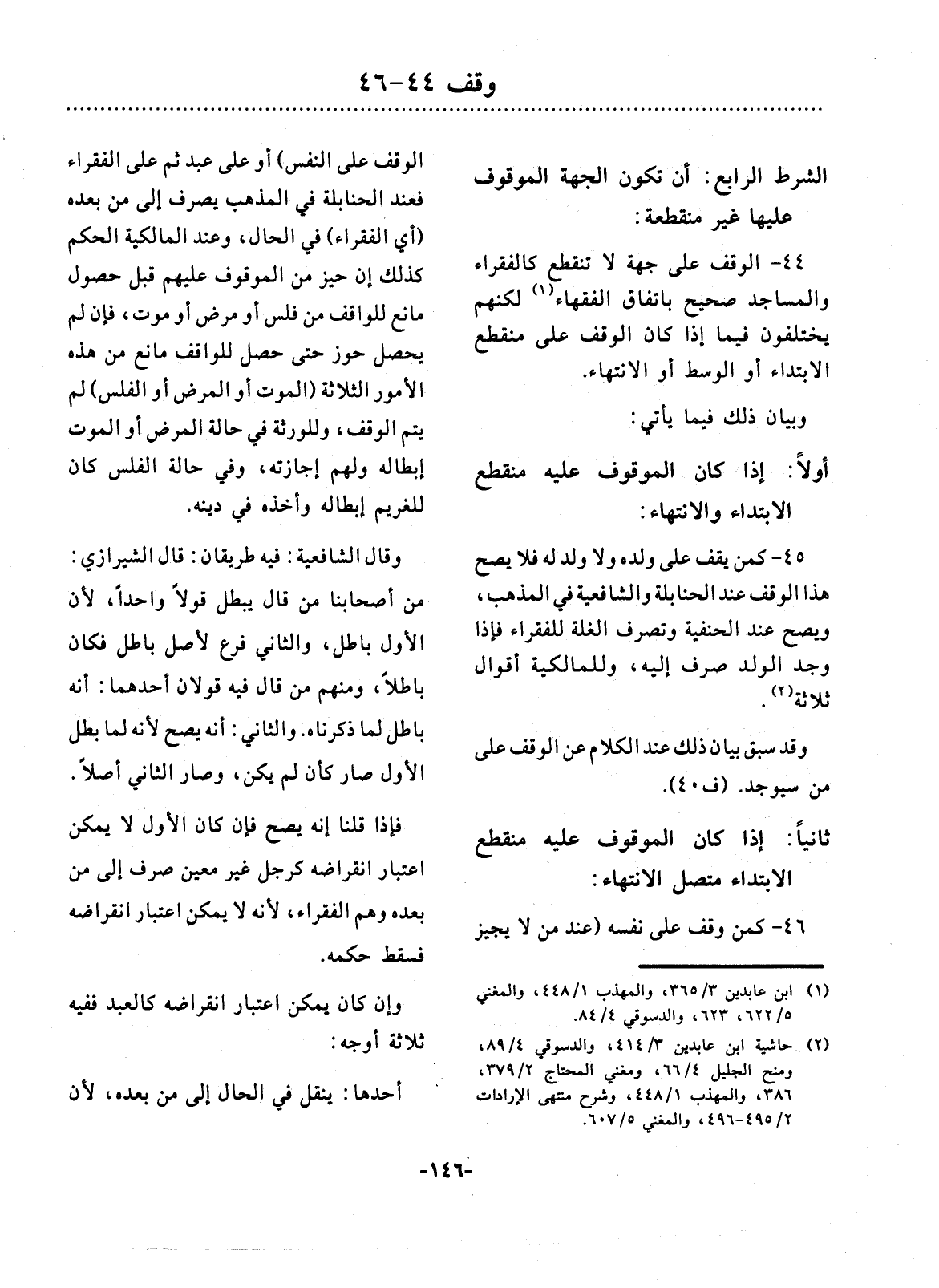 44 - الْوَقْفُ عَلَى جِهَةٍ لاَ تَنْقَطِعُ كَالْفُقَرَاءِ وَالْمَسَاجِدِ صَحِيحٌ بِاتِّفَاقِ الْفُقَهَاءِ (1) لَكِنَّهُمْ يَخْتَلِفُونَ فِيمَا إِذَا كَانَ الْوَقْفُ عَلَى مُنْقَطِعِ الاِبْتِدَاءِ أَوِ الْوَسَطِ أَوِ الاِنْتِهَاءِ.