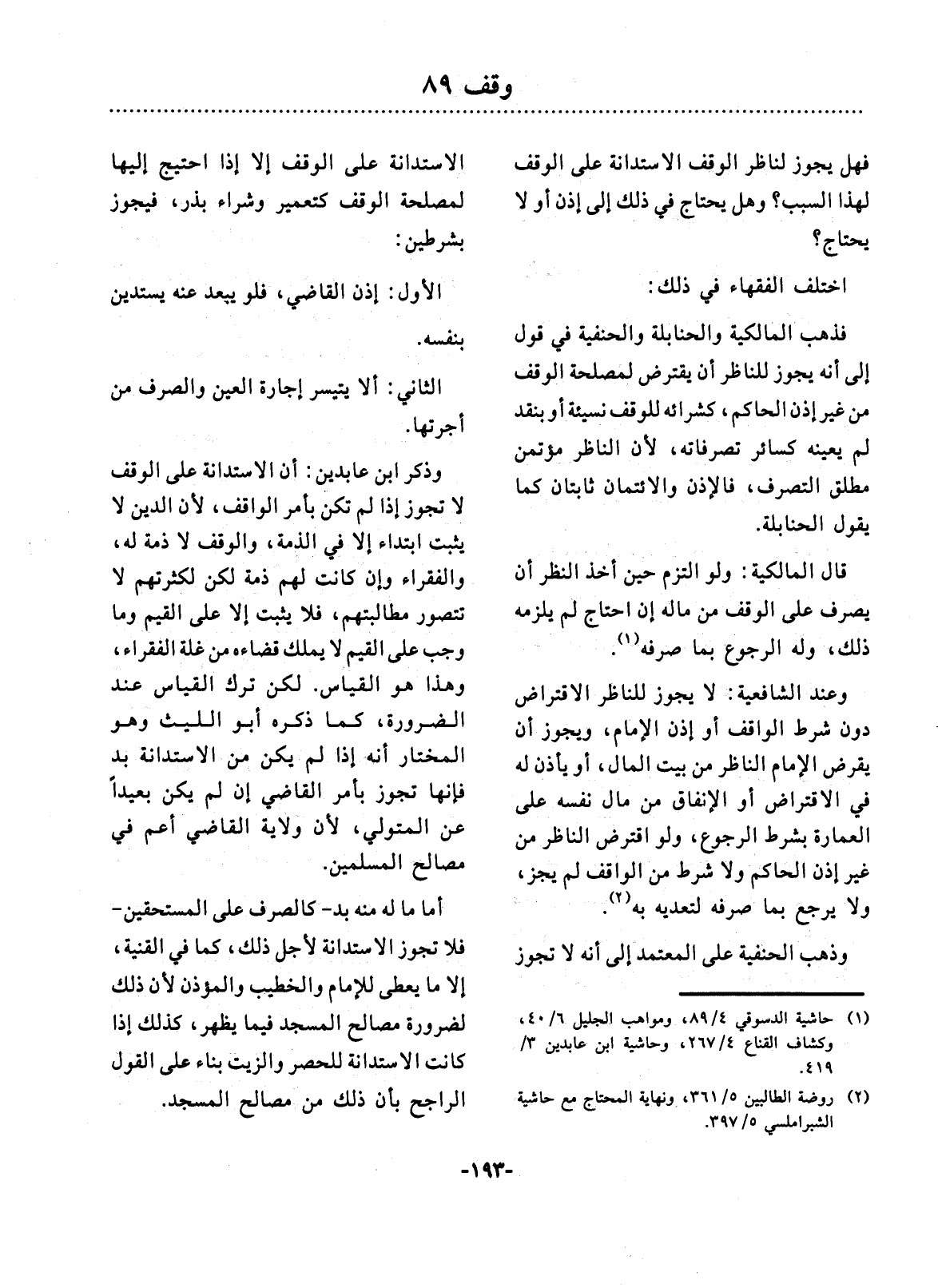 (1) حاشية الدسوقي 4 / 89، ومواهب الجليل 6 / 40، وكشاف القناع 4 / 267، وحاشية ابن عابدين 3 / 419.