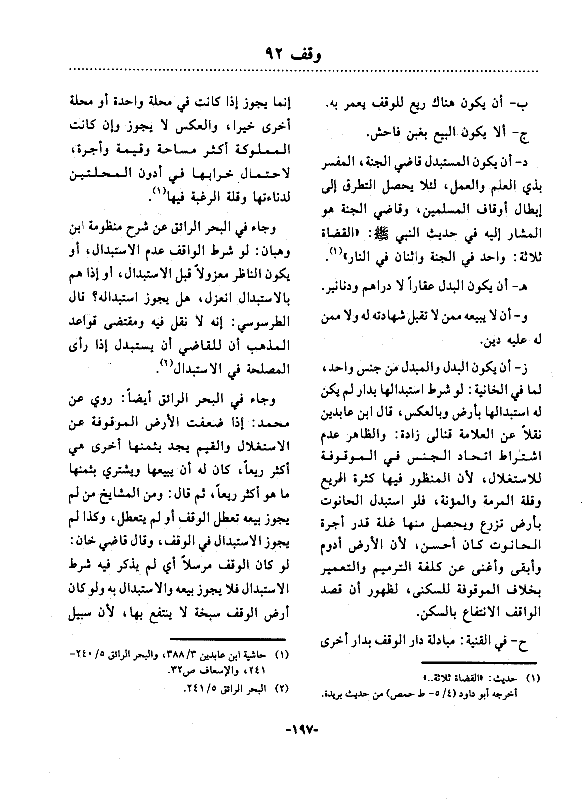 (1) حاشية ابن عابدين 3 / 388، والبحر الرائق 5 / 240 - 241، والإسعاف ص32.