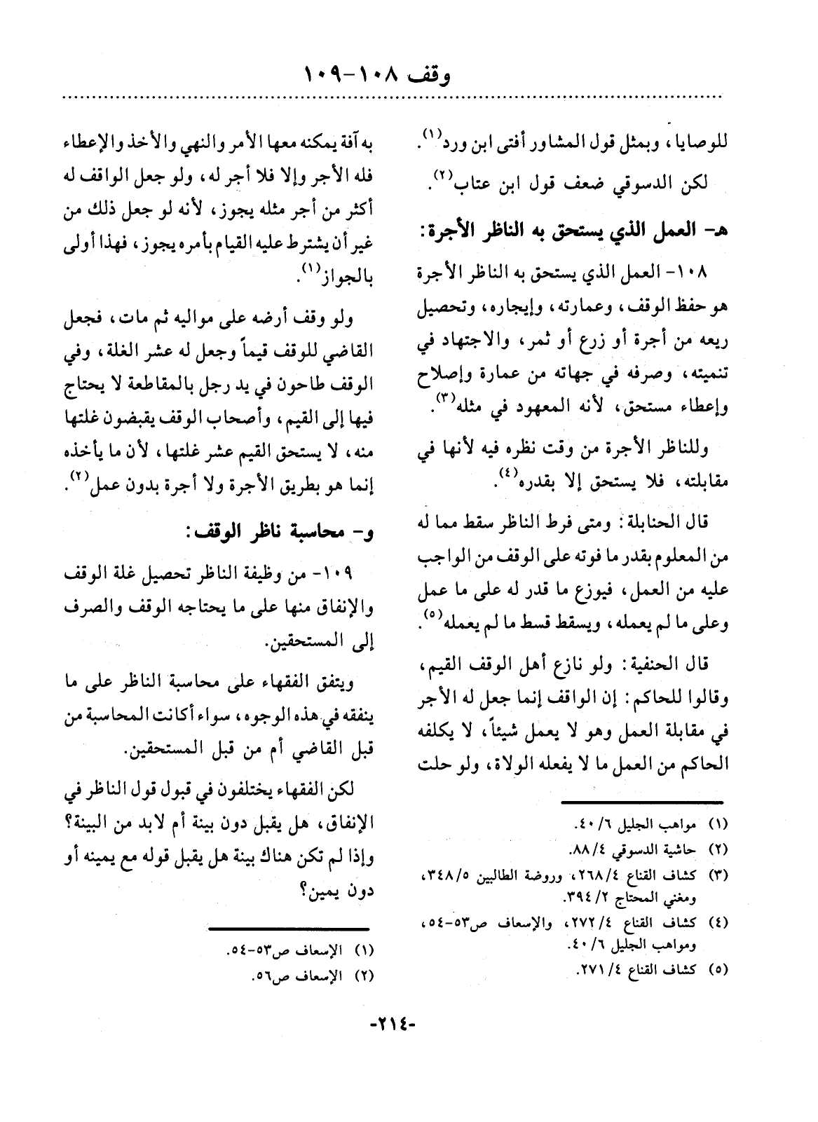109 - مِنْ وَظِيفَةِ النَّاظِرِ تَحْصِيل غَلَّةِ الْوَقْفِ وَالإِْنْفَاقُ مِنْهَا عَلَى مَا يَحْتَاجُهُ الْوَقْفُ وَالصَّرْفُ إِلَى الْمُسْتَحِقِّينَ.