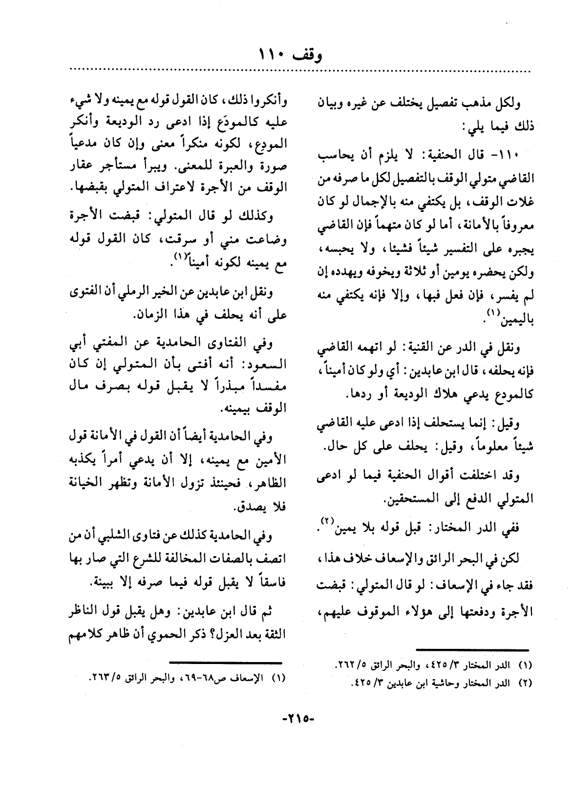 (2) الدر المختار وحاشية ابن عابدين 3 / 425.