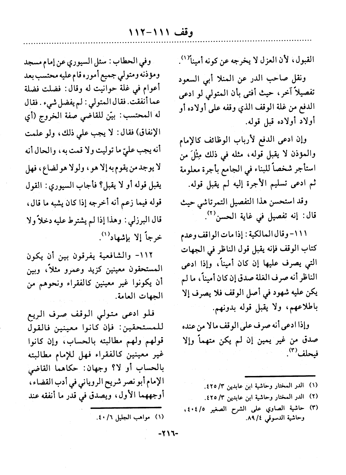 (2) الدر المختار وحاشية ابن عابدين 3 / 425.
