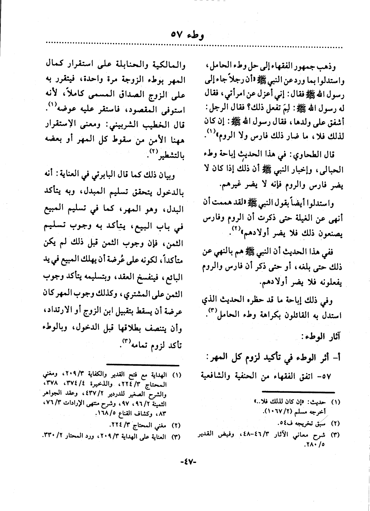 57 - اتَّفَقَ الْفُقَهَاءُ مِنَ الْحَنَفِيَّةِ وَالشَّافِعِيَّةِ
