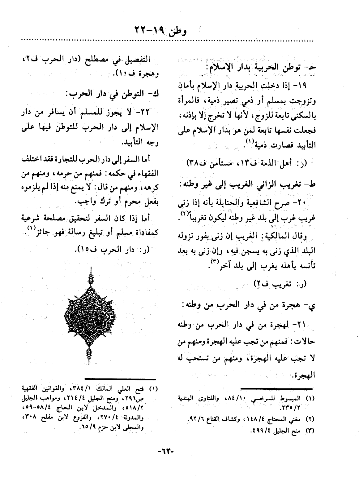 22 - لاَ يَجُوزُ لِلْمُسْلِمِ أَنْ يُسَافِرَ مِنْ دَارِ الإِْسْلاَمِ إِلَى دَارِ الْحَرْبِ لِلتَّوَطُّنِ فِيهَا عَلَى وَجْهِ التَّأْبِيدِ.