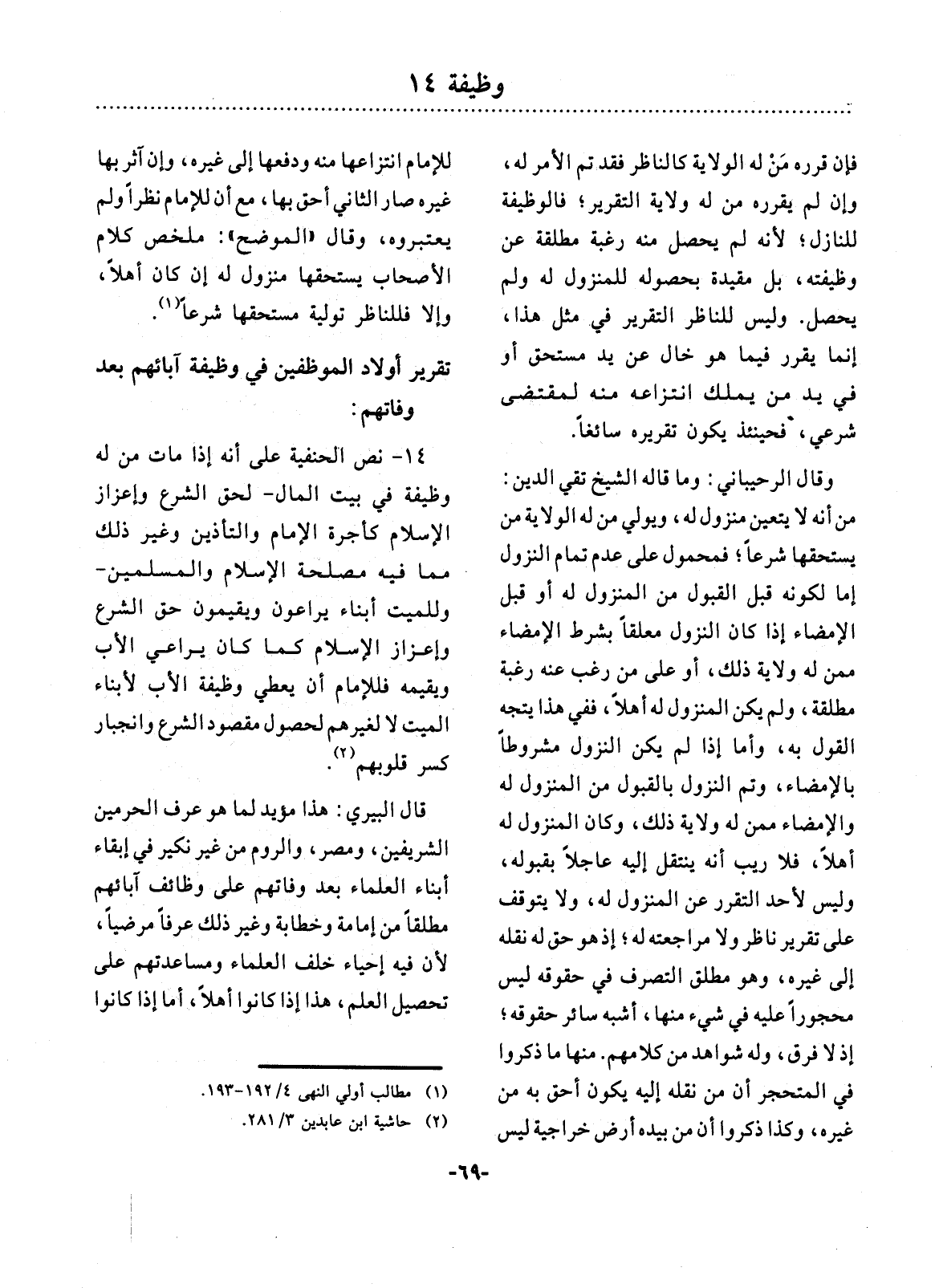 (1) مطالب أولي النهى 4 / 192 - 193.