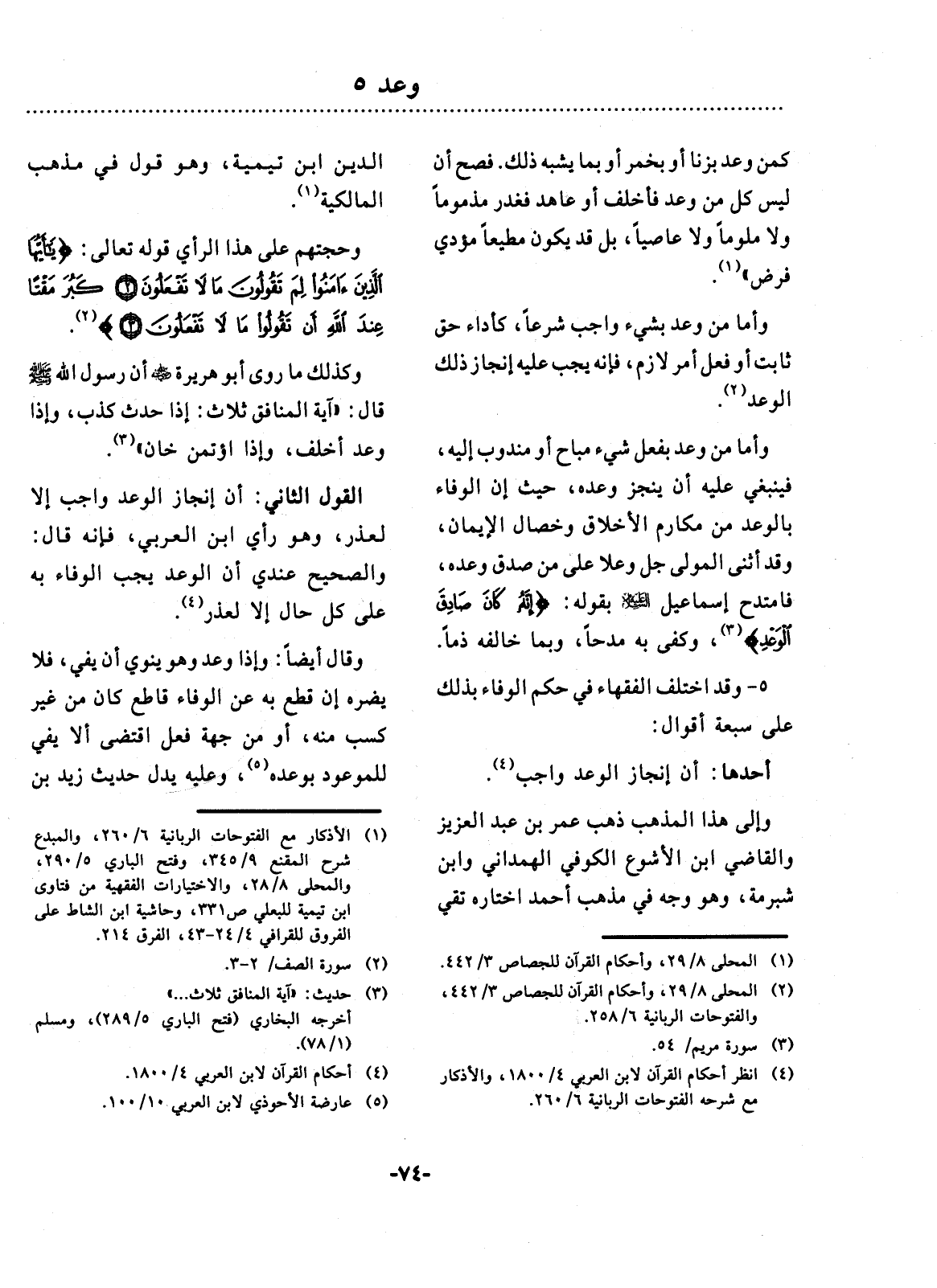 (4) انظر أحكام القرآن لابن العربي 4 / 1800، والأذكار مع شرحه الفتوحات الربانية 6 / 260.
