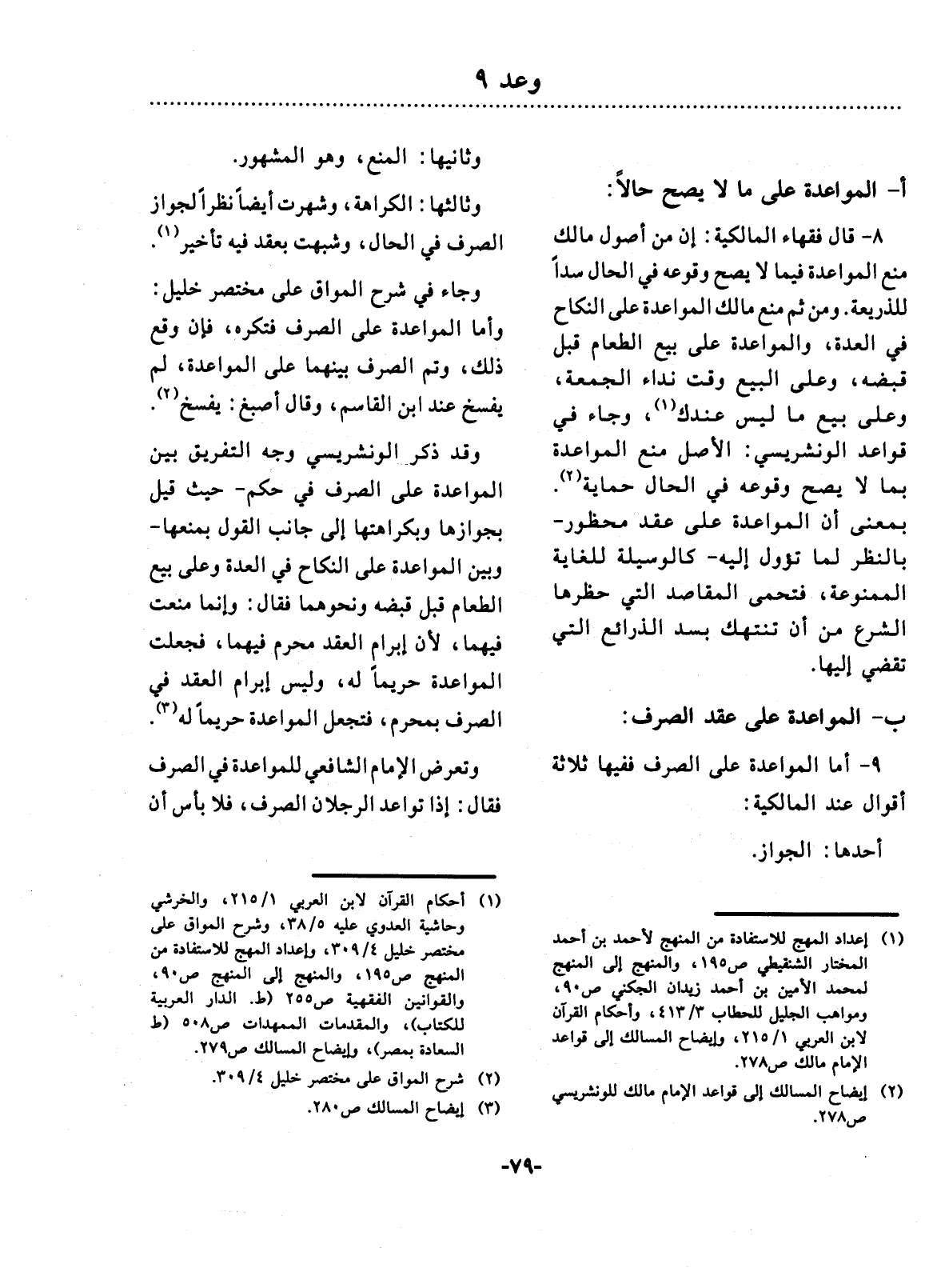 9 - أَمَّا الْمُوَاعَدَةُ عَلَى الصَّرْفِ فَفِيهَا ثَلاَثَةُ أَقْوَالٍ عِنْدَهُمْ: