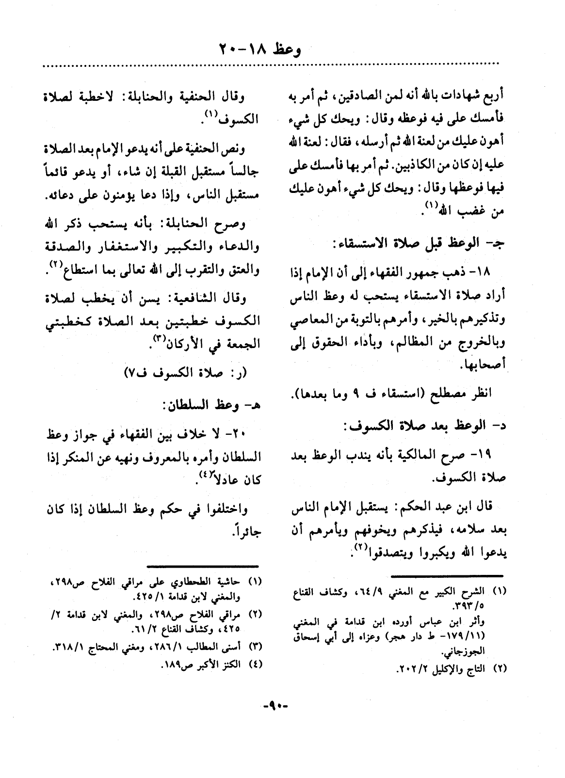 19 - صَرَّحَ الْمَالِكِيَّةُ بِأَنَّهُ يُنْدَبُ الْوَعْظُ بَعْدَ صَلاَةِ الْكُسُوفِ.
