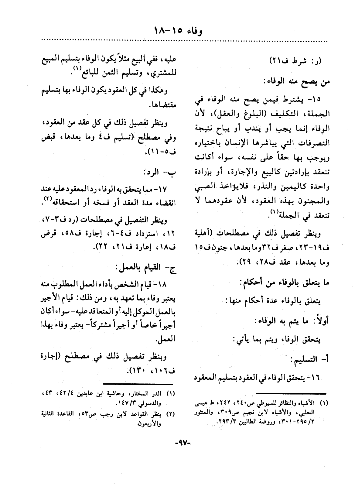 17 - مِمَّا يَتَحَقَّقُ بِهِ الْوَفَاءُ رَدُّ الْمَعْقُودِ عَلَيْهِ عِنْدَ انْقِضَاءِ مُدَّةِ الْعَقْدِ أَوْ فَسْخِهِ أَوِ اسْتِحْقَاقِهِ (2) .