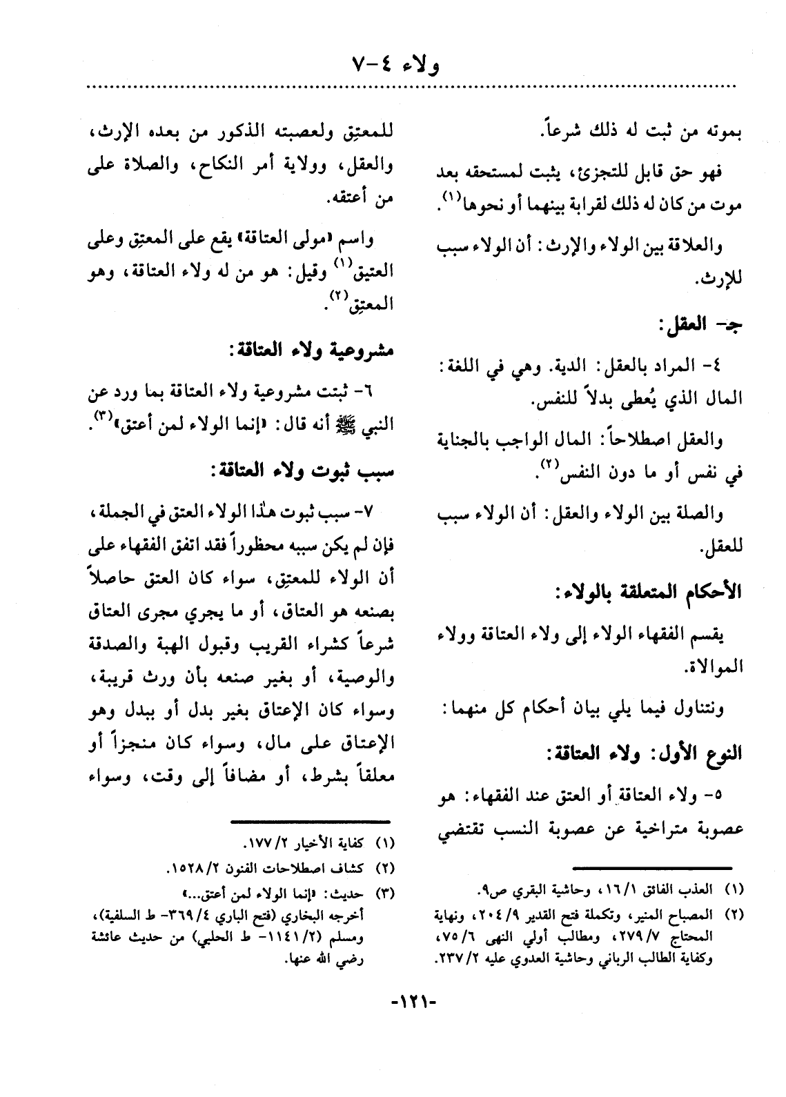 5 - وَلاَءُ الْعَتَاقَةِ أَوِ الْعِتْقِ عِنْدَ الْفُقَهَاءِ: هُوَ عُصُوبَةٌ مُتَرَاخِيَةٌ عَنْ عُصُوبَةِ النَّسَبِ تَقْتَضِي