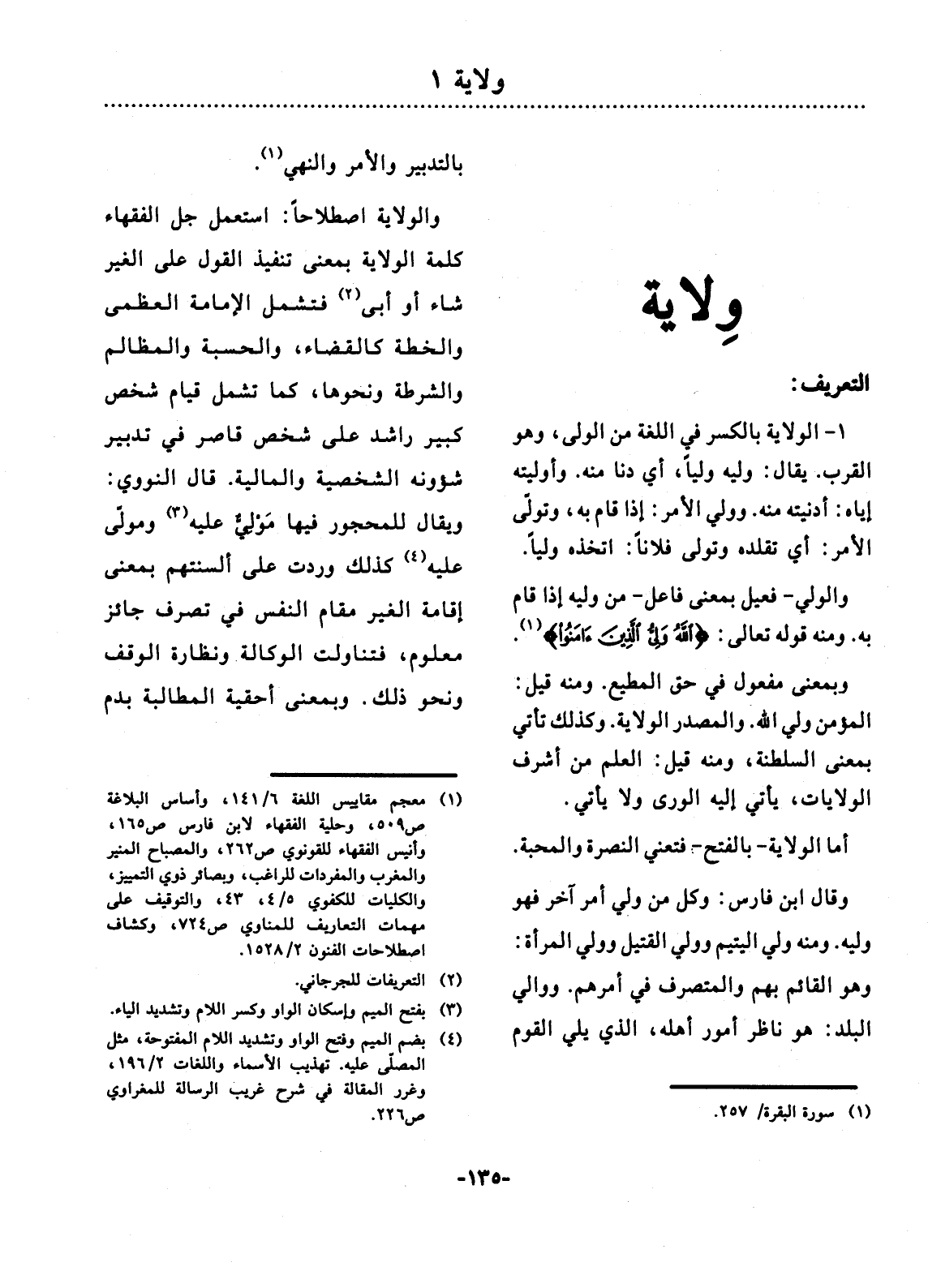 (1) معجم مقاييس اللغة 6 141، أساس البلاغة ص 509، حلية الفقهاء لابن فارس ص 165، وأنيس الفقهاء للقرنوي ص 262، والمصباح المنير والمغرب والمفردات للراغب، بصائر ذوي التمييز، والكليات للكفوي 5 4،43، التوقيف على مهمات التعاريف للمناوي ص 724، كشاف اصطلاحات الفنون 2 1528.