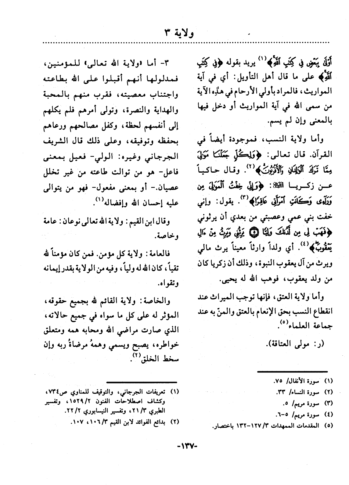 (1) تعريفات الجرجاني، والتوقيف للمناوي ص 734، وكشاف اف اصطلاحات الفنون 2 1529، وتفسير الطبري 3 21، وتفسير النيسابوري 2 22.