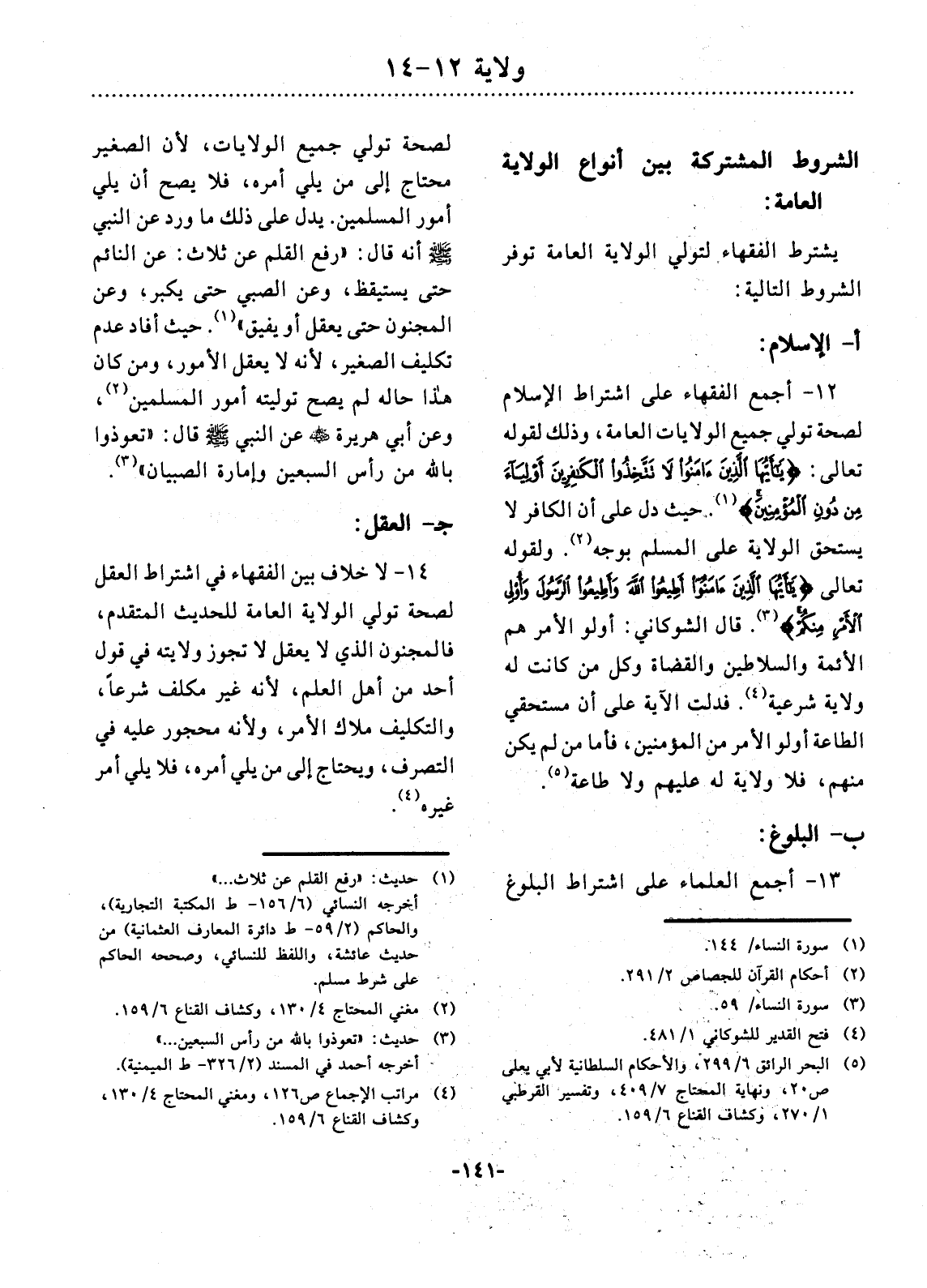 (5) البحر الرائق 6 299، والأحكام السلطانية لأبي يعلى ص 20، ونهاية المحتاج 7 409، وتفسير القرطبي 1 270، وكشاف القناع 6 159.
