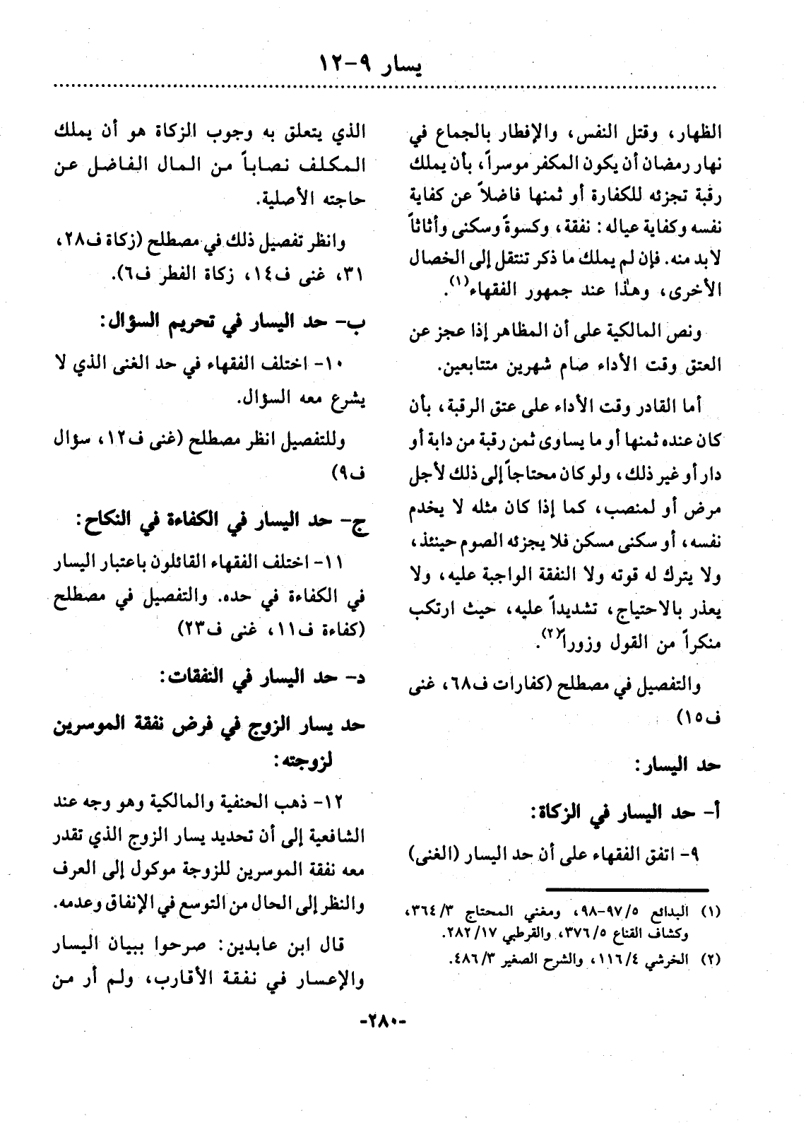 9 ـ اتَّفَقَ الْفُقَهَاءُ عَلَى أَنَّ حَدَّ الْيَسَارِ " الْغِنَى)