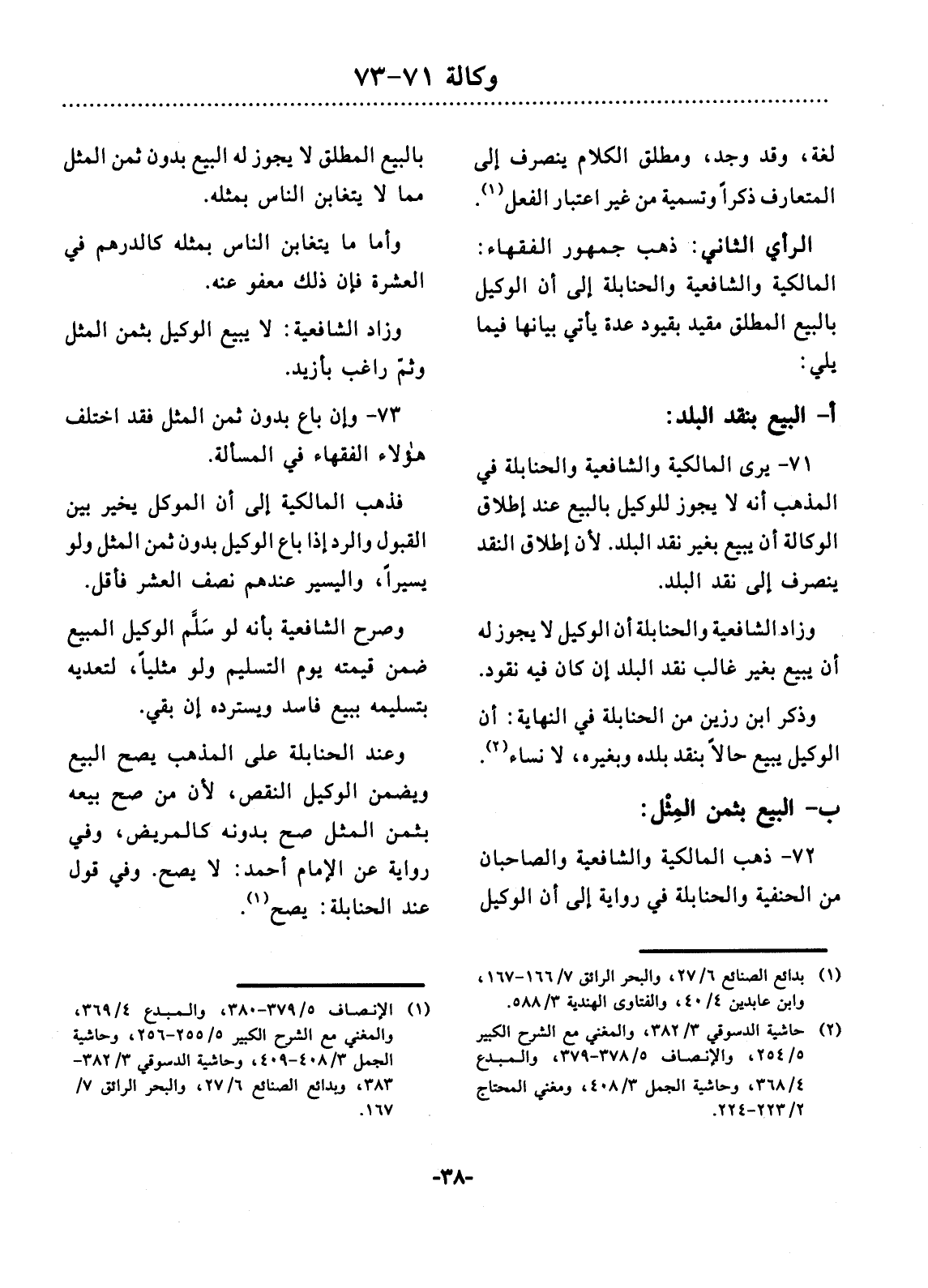 73 - وَإِنْ بَاعَ بِدُونِ ثَمَنِ الْمِثْل فَقَدِ اخْتَلَفَ هَؤُلاَءِ الْفُقَهَاءُ فِي الْمَسْأَلَةِ.