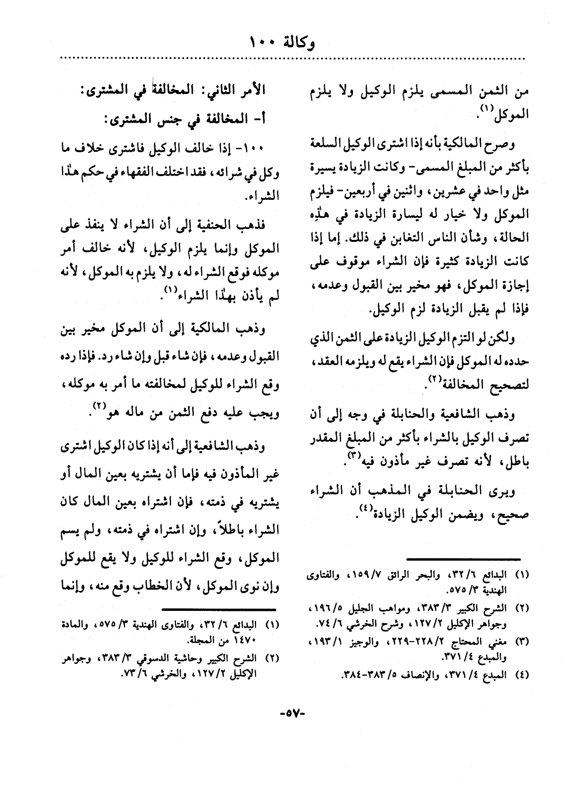 100 - إِذَا خَالَفَ الْوَكِيل فَاشْتَرَى خِلاَفَ مَا وُكِّل فِي شِرَائِهِ، فَقَدِ اخْتَلَفَ الْفُقَهَاءُ فِي حُكْمِ هَذَا الشِّرَاءِ.