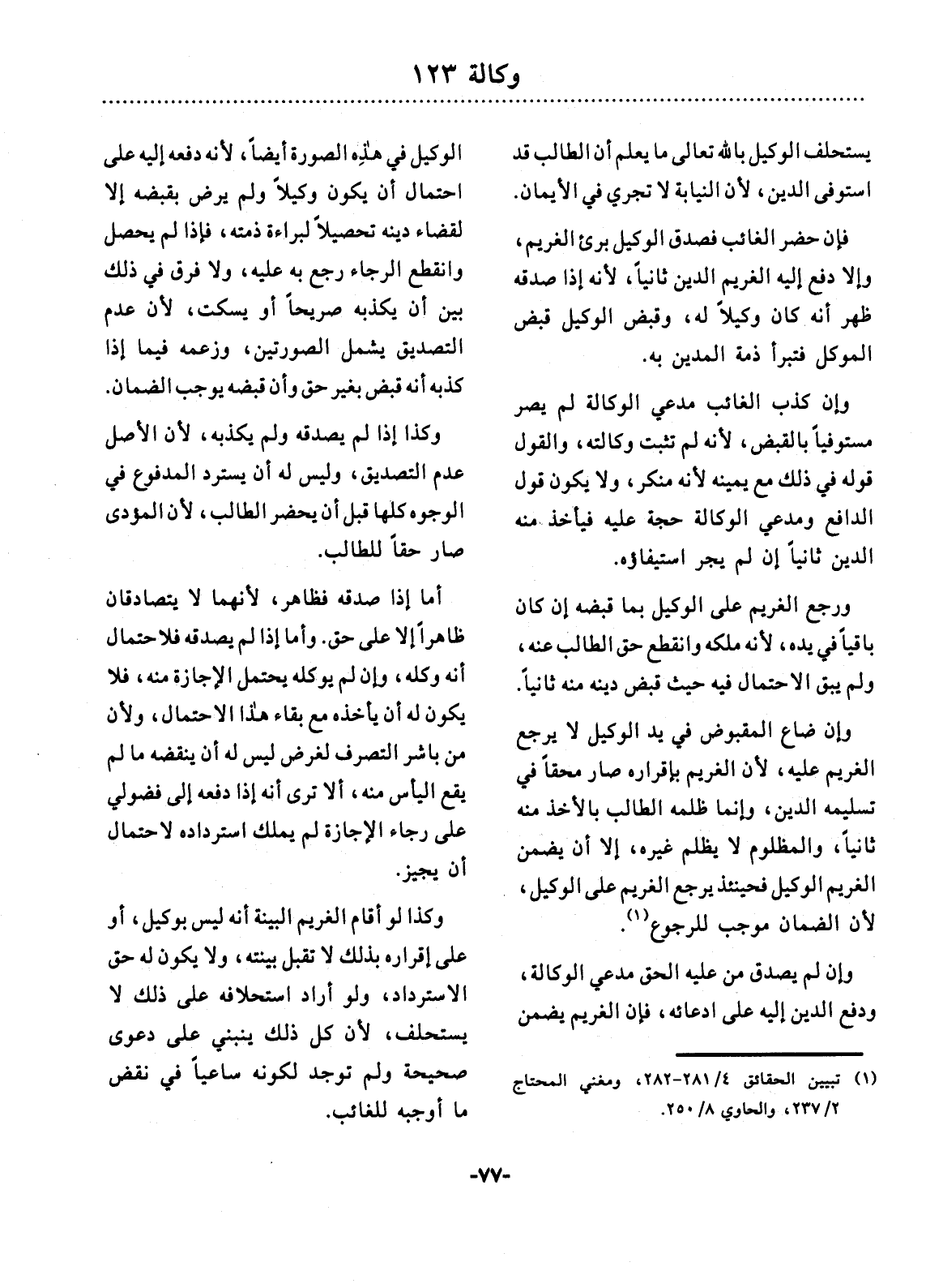 (1) تبيين الحقائق 4 / 281 ـ 282، ومغني المحتاج 2 / 237، والحاوي 8 / 250.